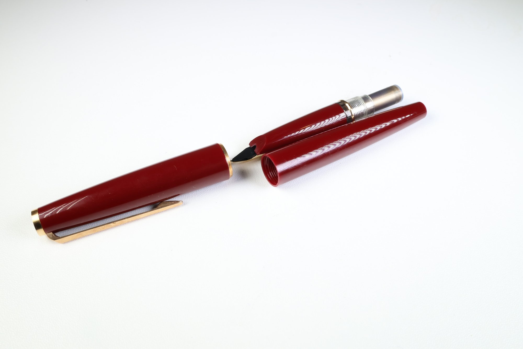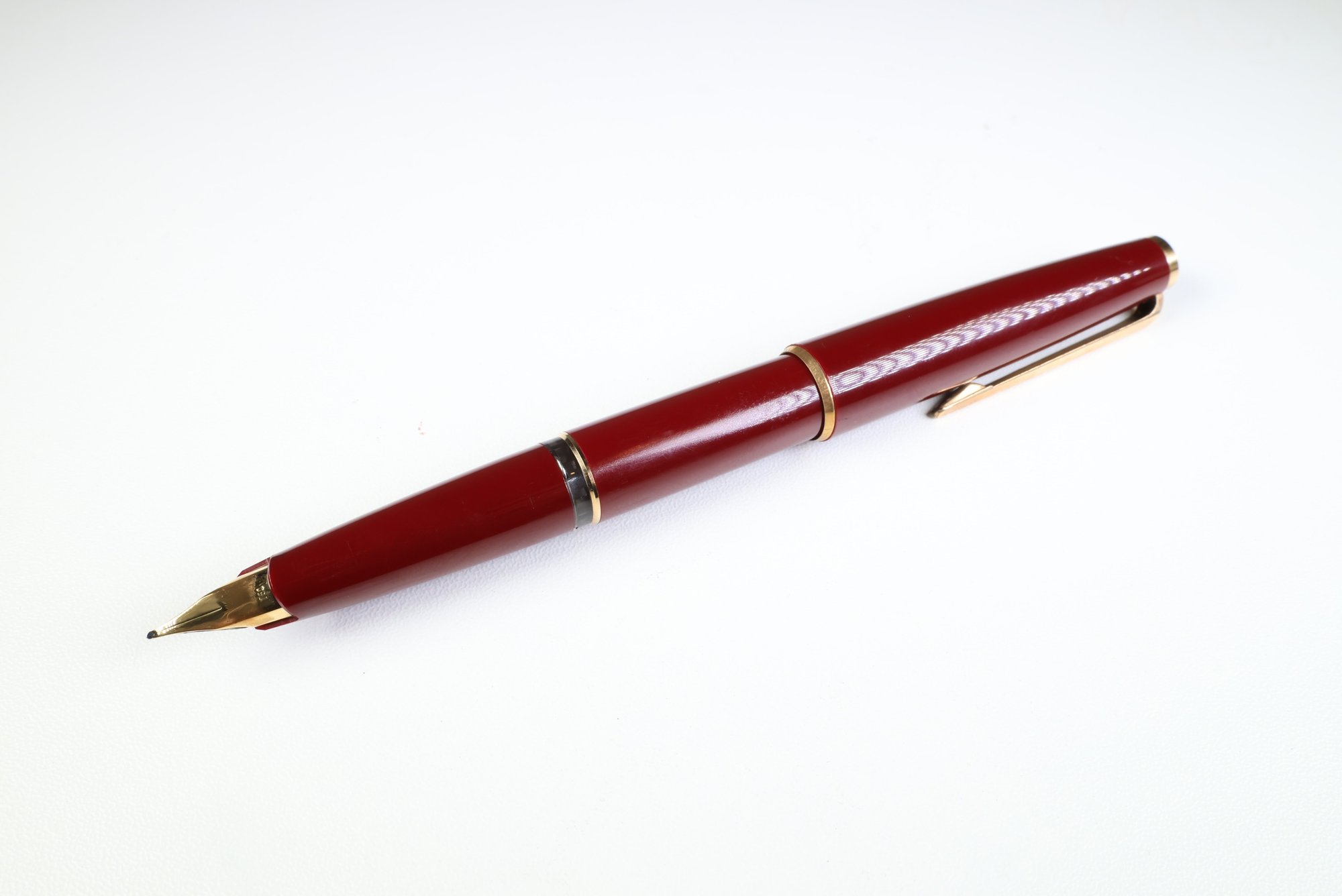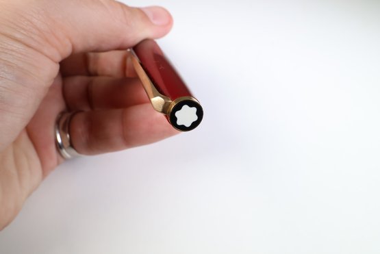 MONTBLANC Fountain Pen In Burgundy Red 18k Gold Nib With Case