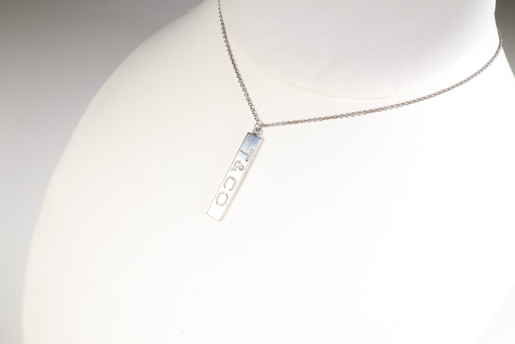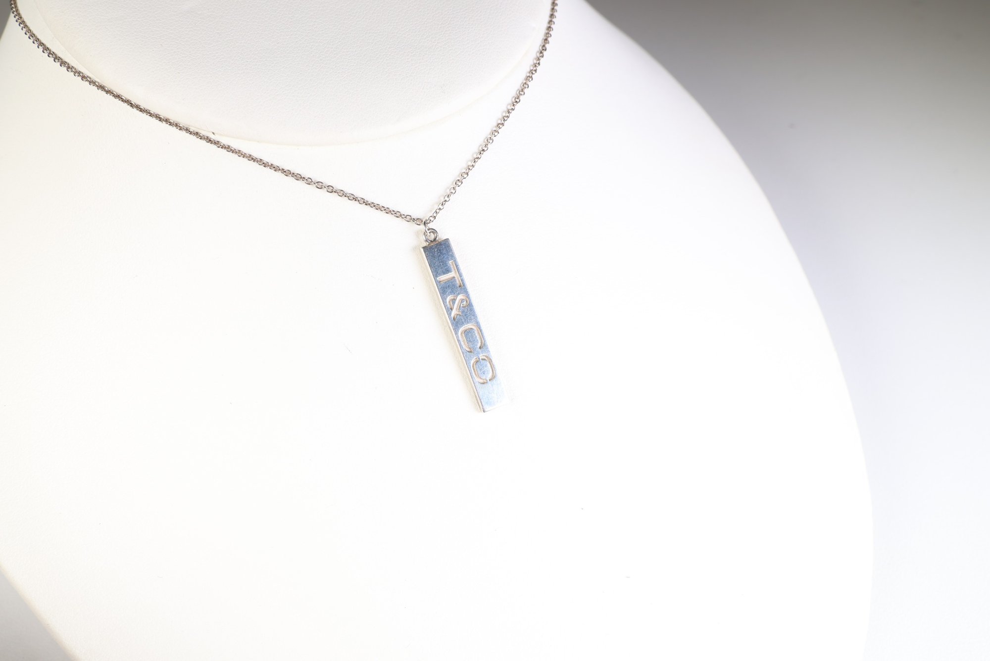 Tiffany & Co. Bar Plate Sterling Silver 925 Necklace Pendant Designer Jewelry
