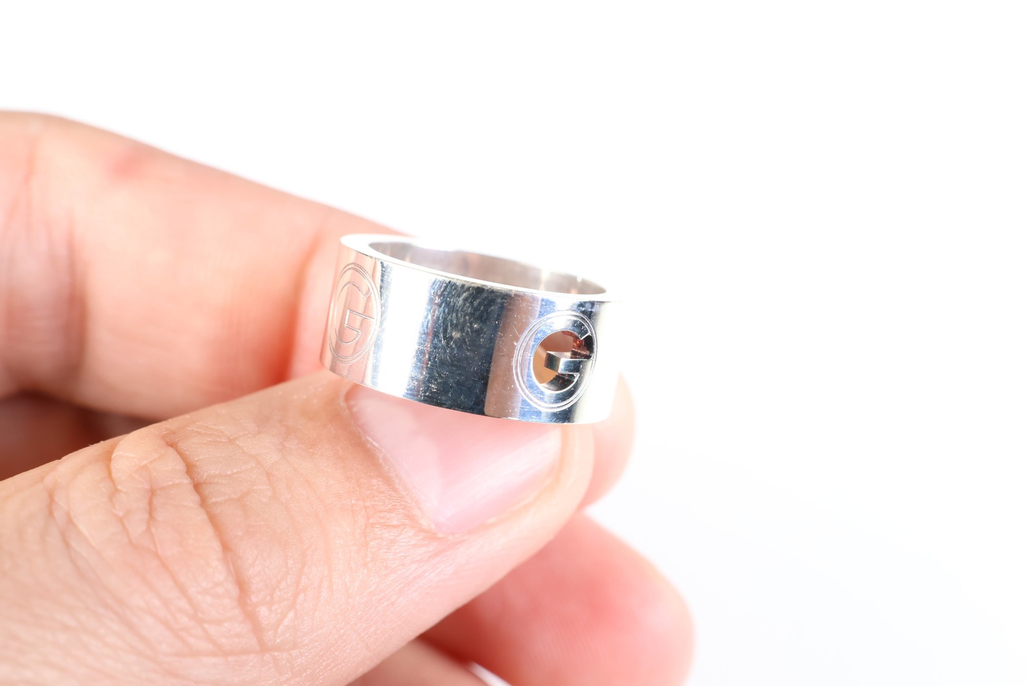 GUCCI CUT-OUT G SIGNATURE BAND RING STERLING SILVER 925