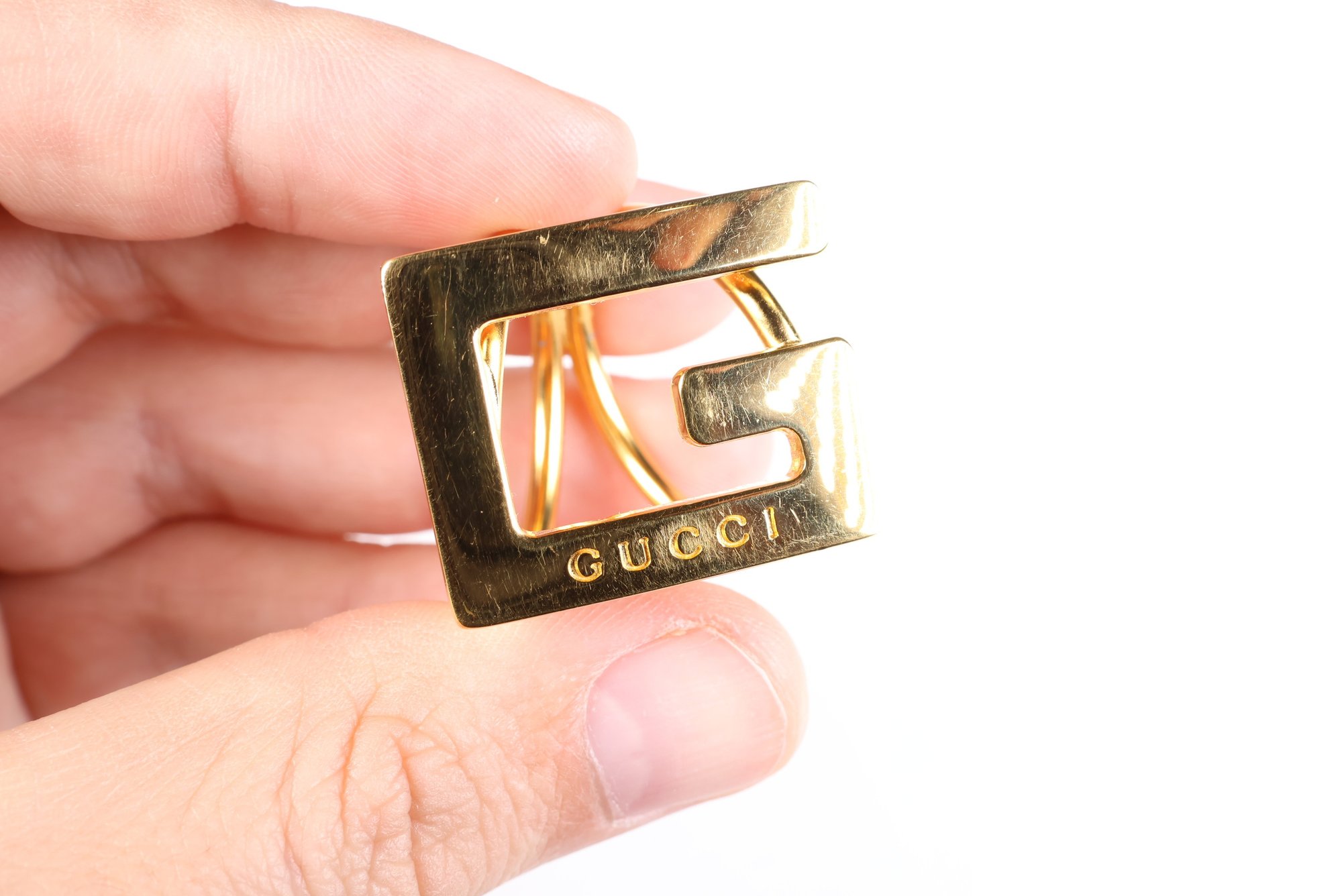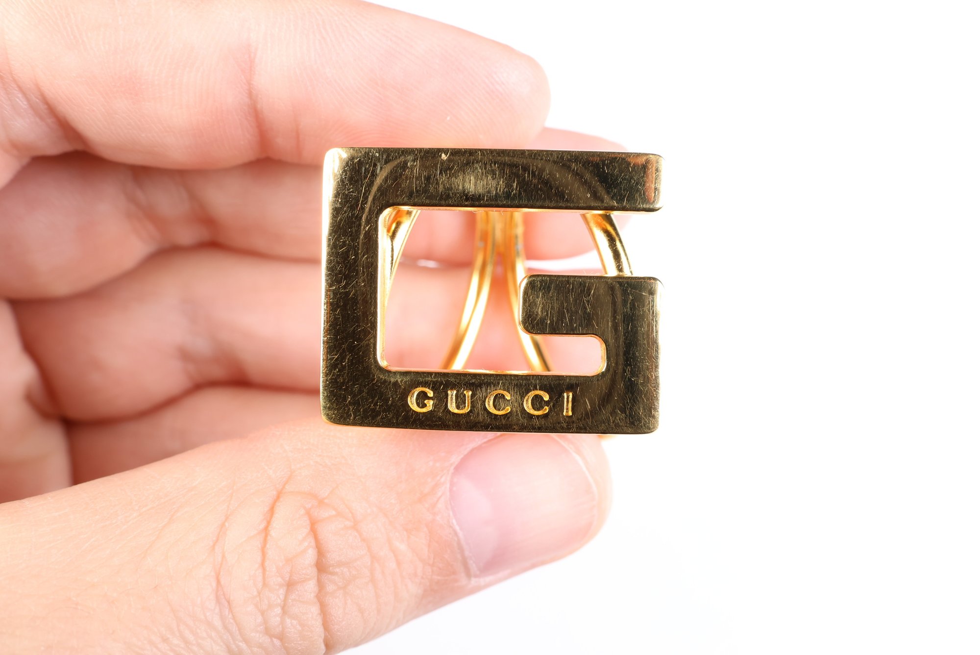 Gucci G Logo Scarf Ring Gold Tone Scarf Holder Metal Accessory