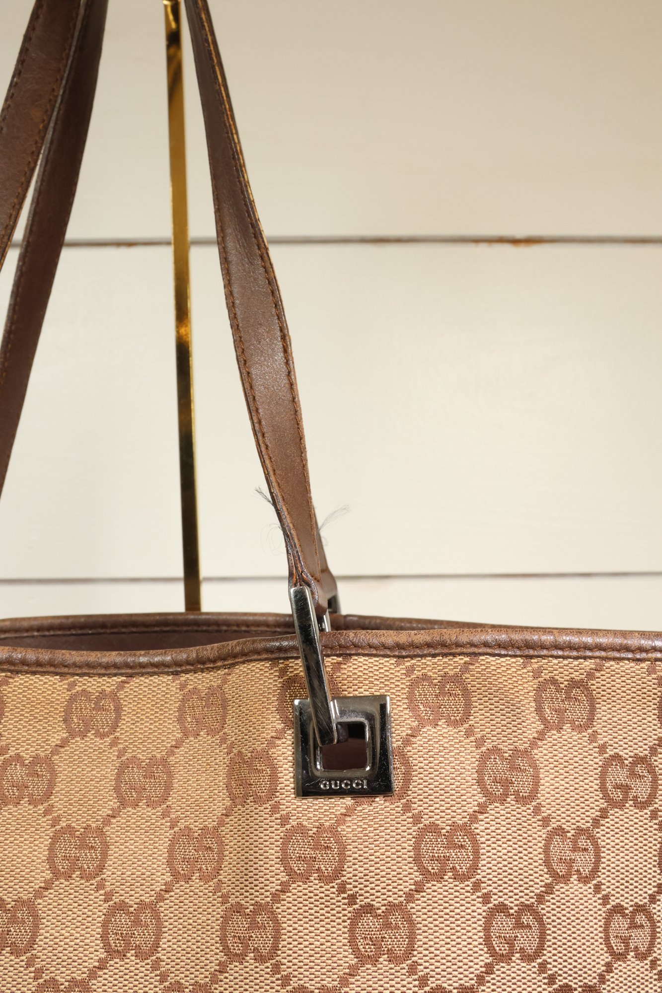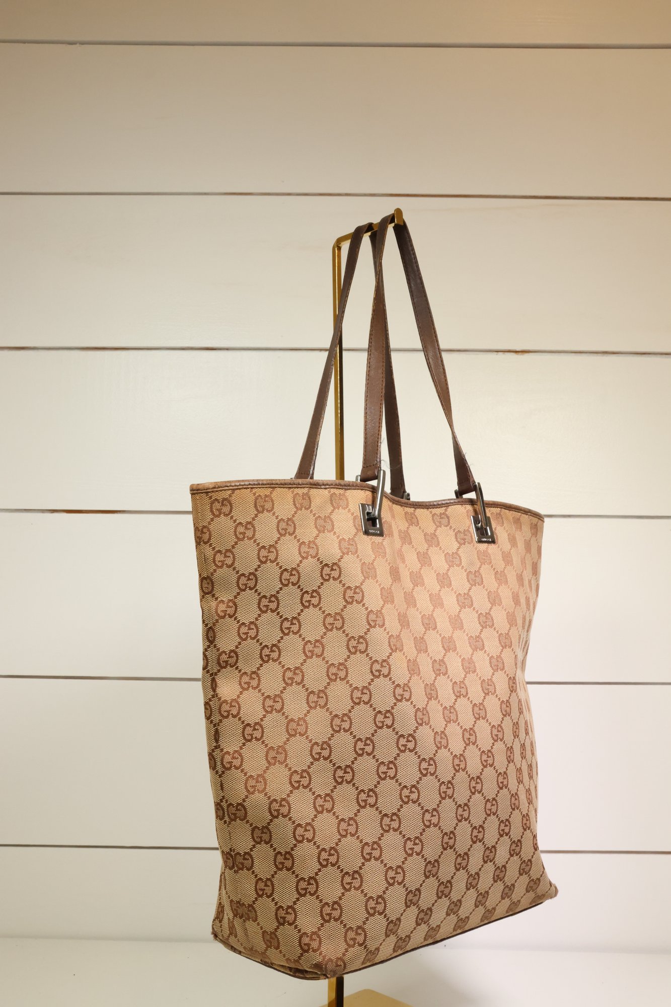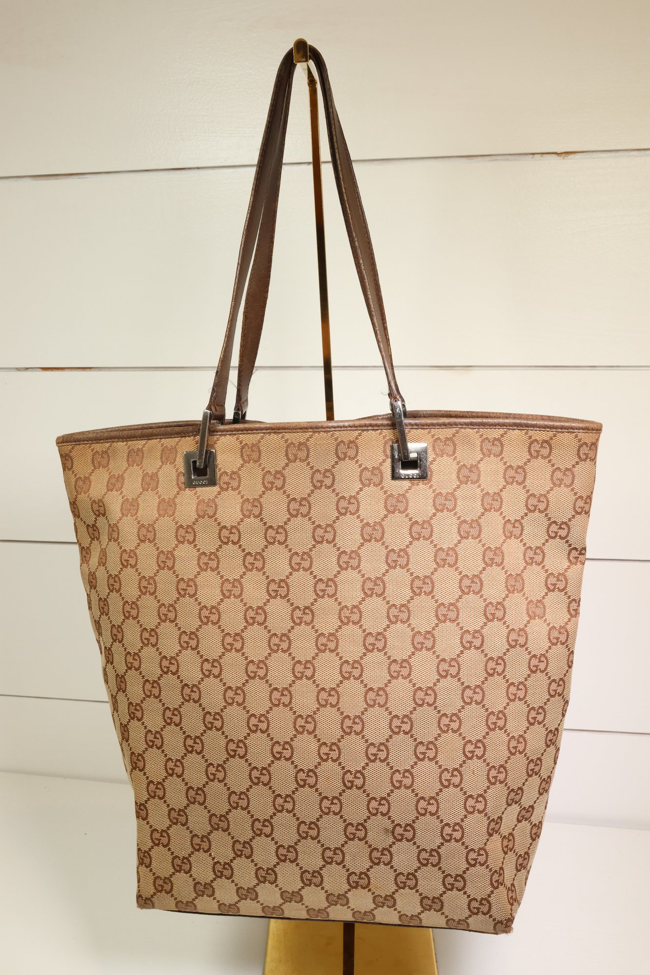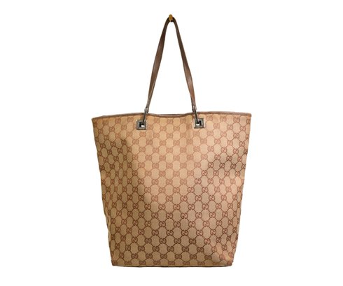 Gucci GG Monogram Large Bucket Tote Dark Brown Purse Gold-Tone Hardware