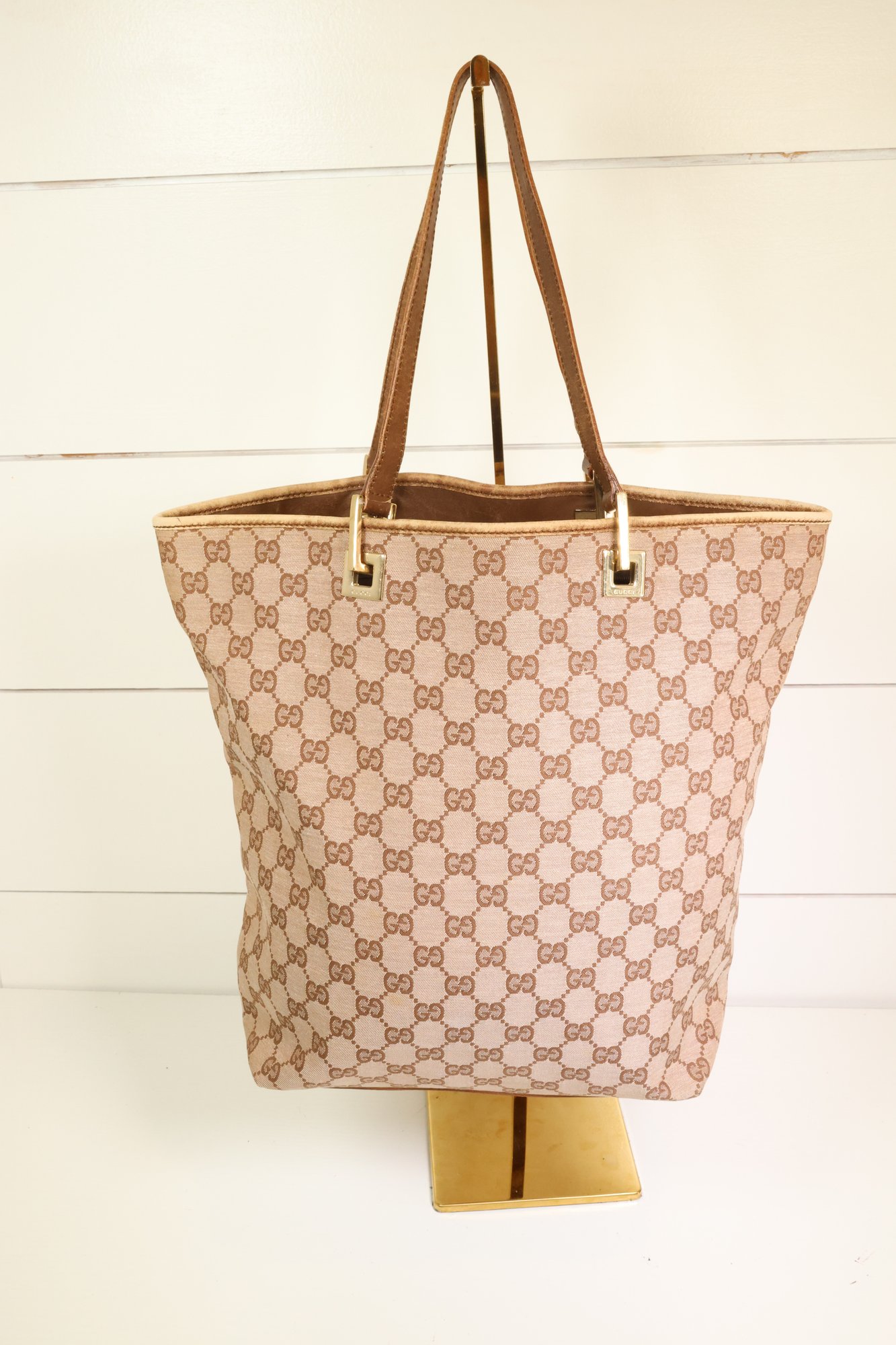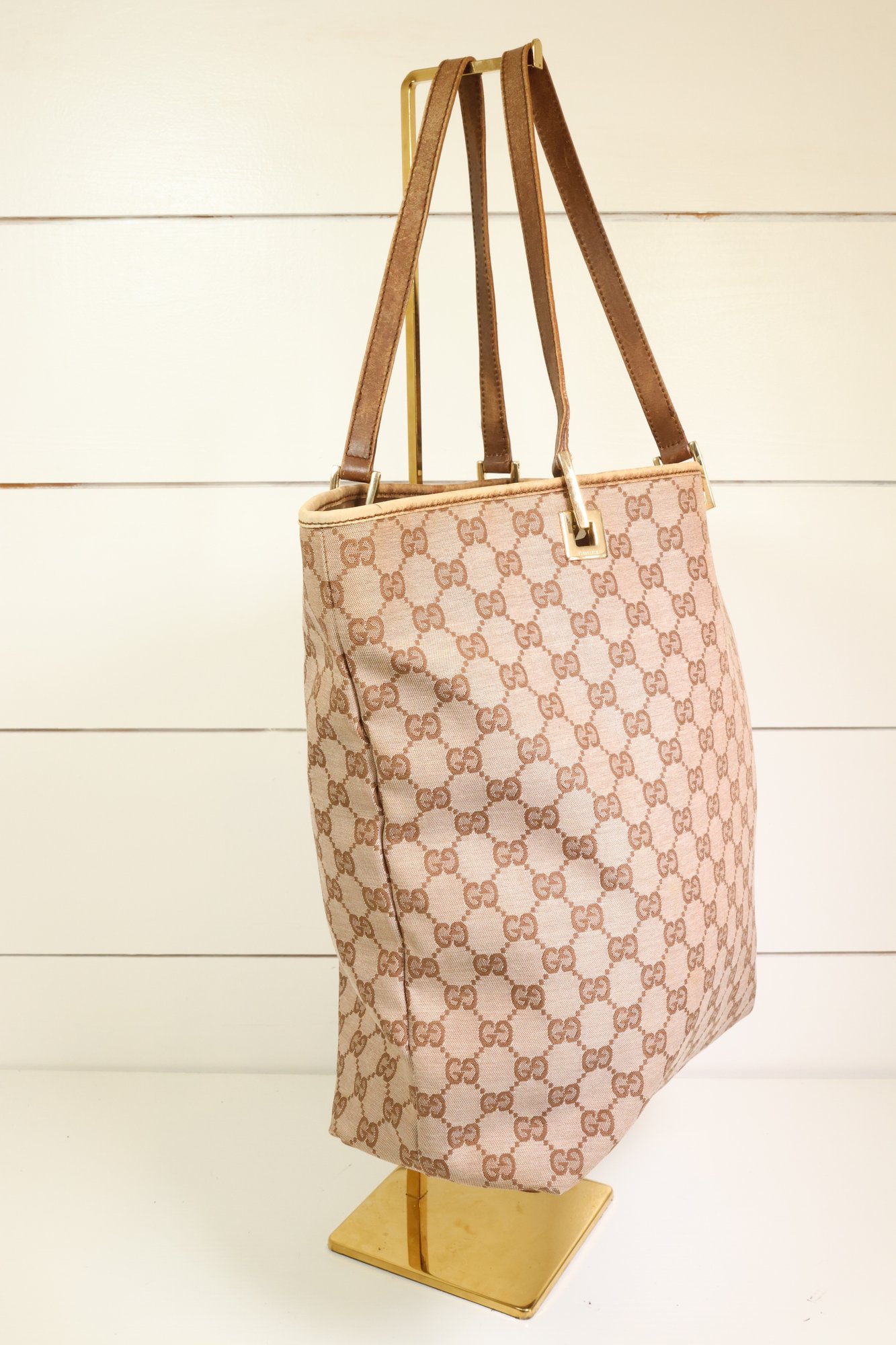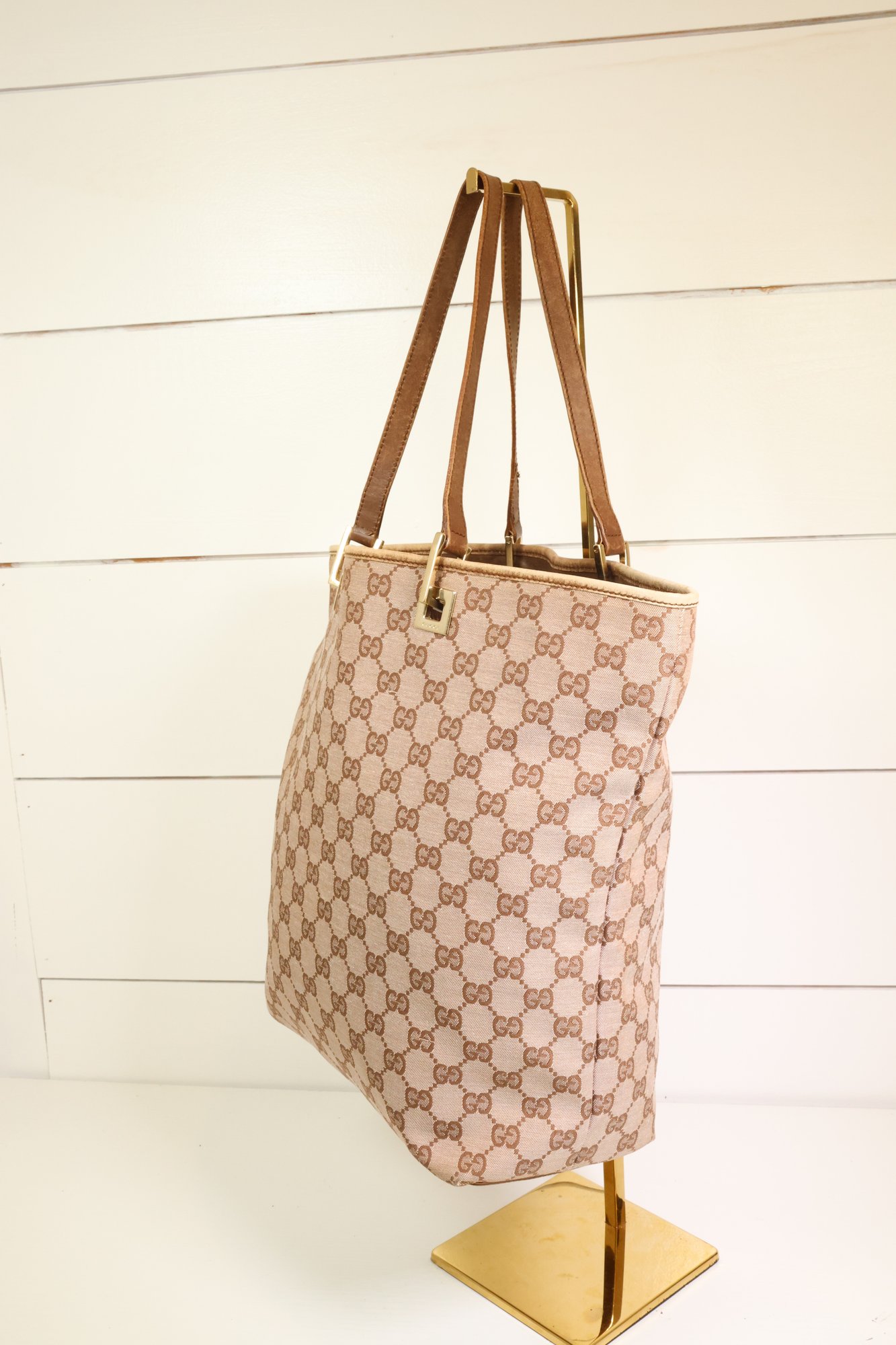Gucci GG Monogram Large Bucket Tote Dark Brown Purse Gold-Tone Hardware