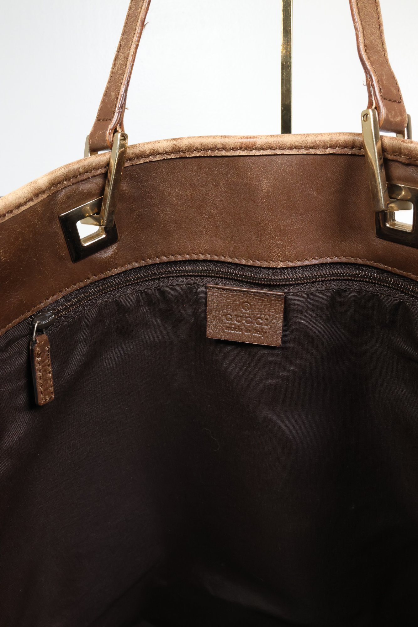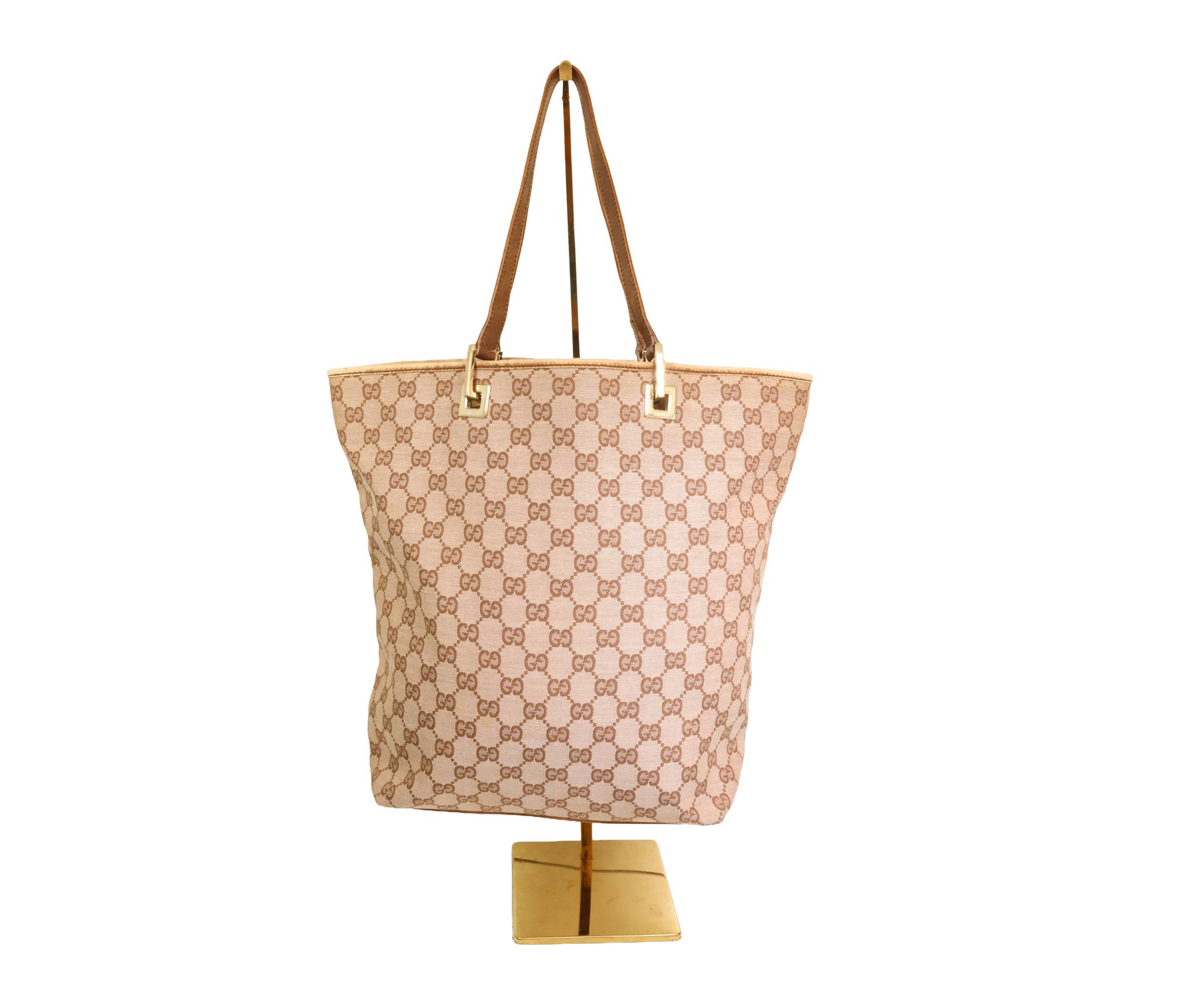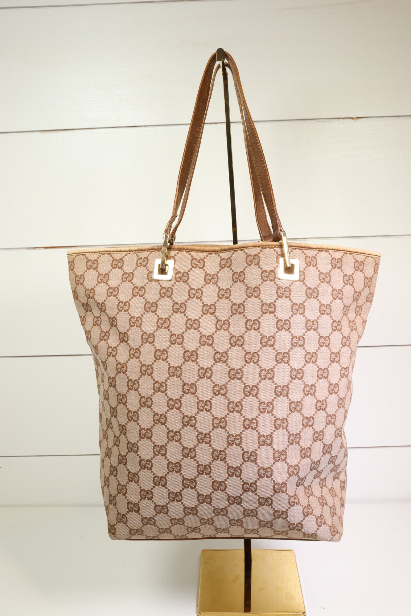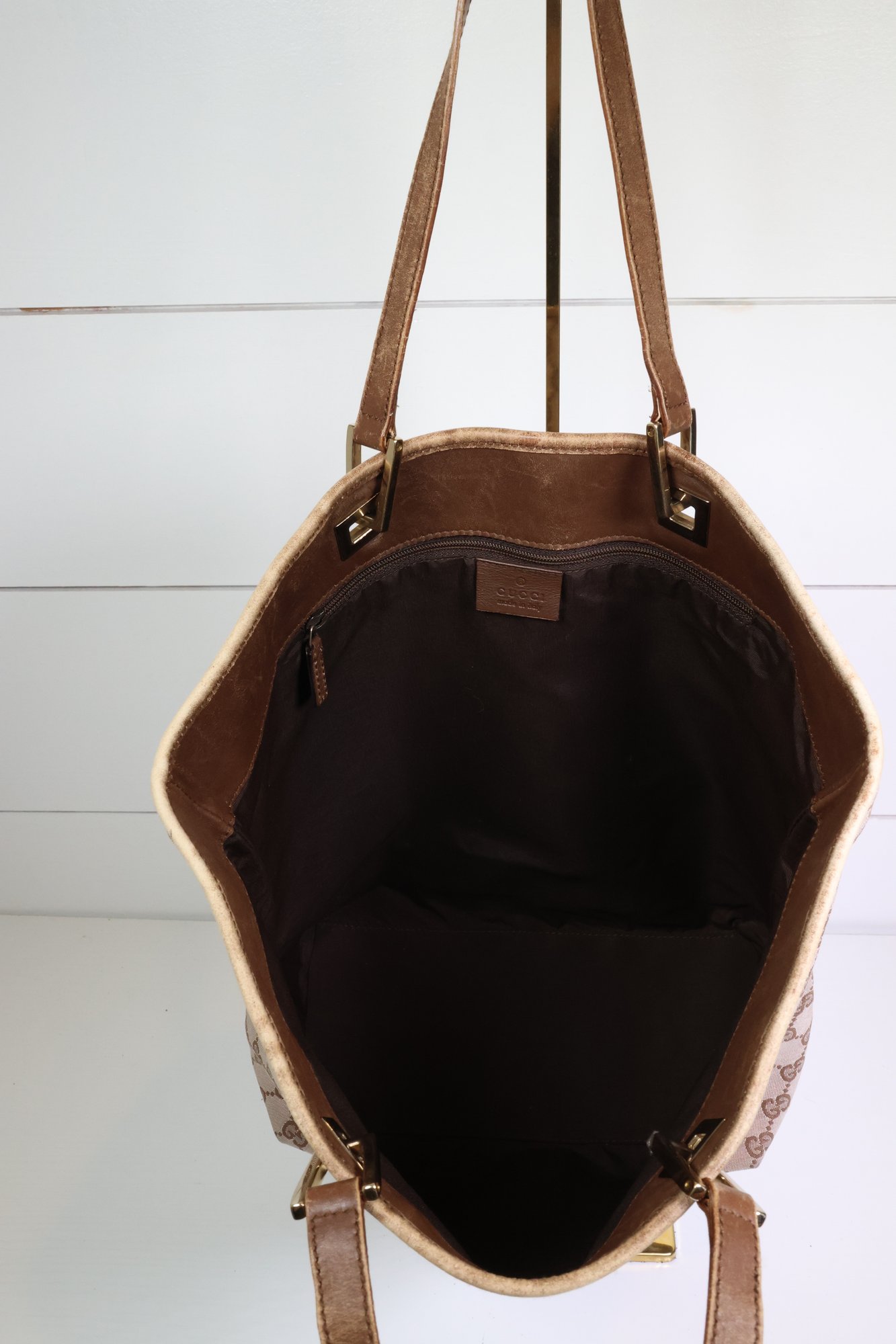 Gucci GG Monogram Large Bucket Tote Dark Brown Purse Gold-Tone Hardware