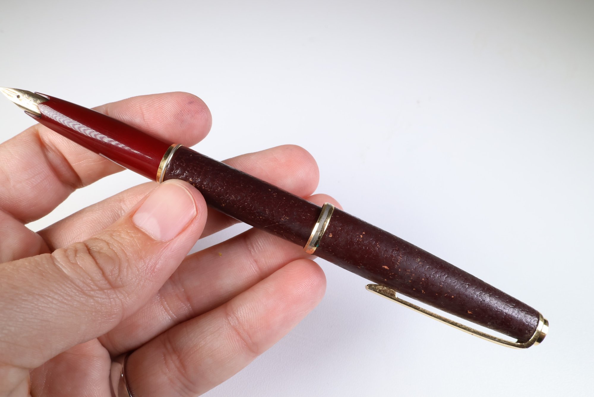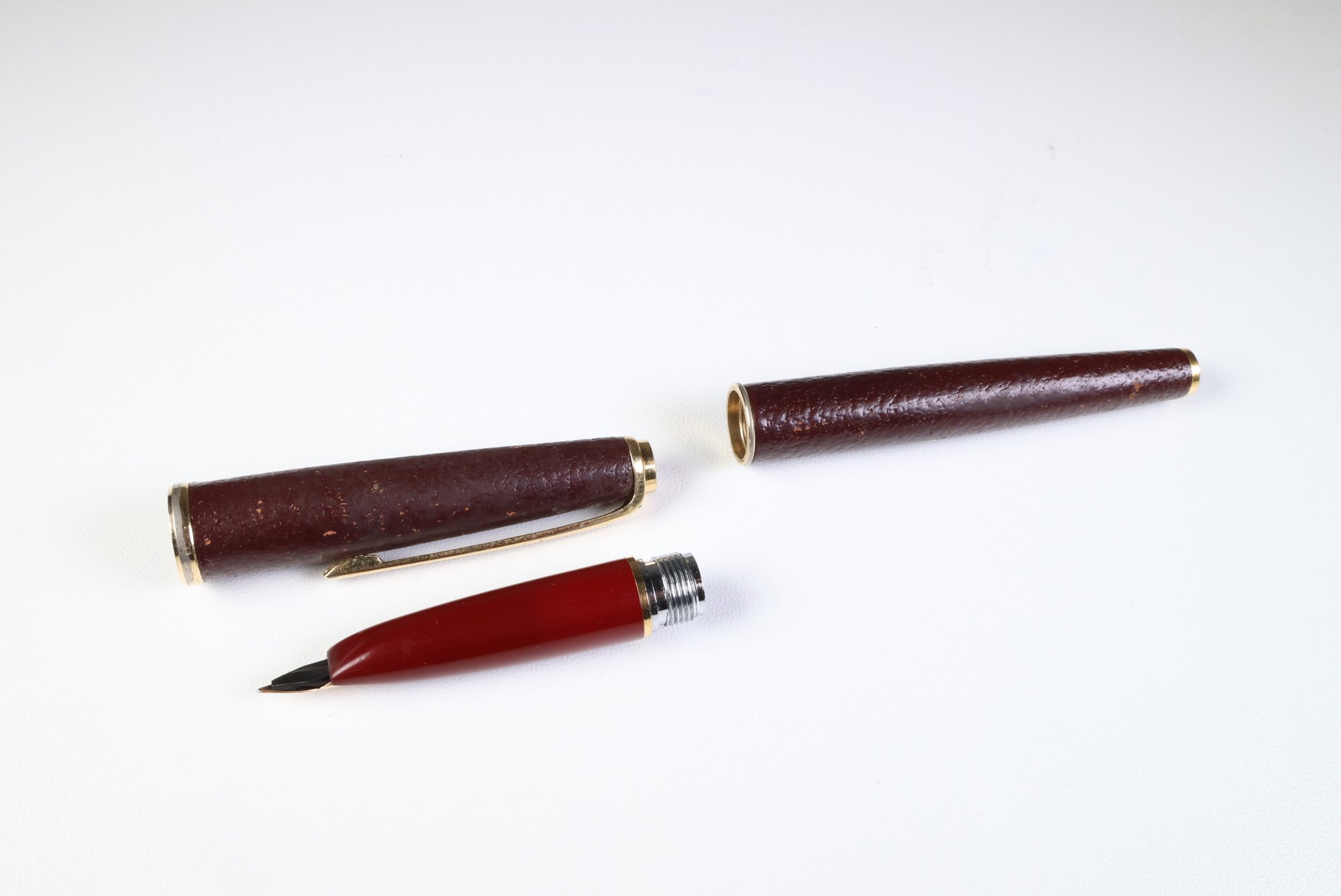 Vintage 1970s Platinum Sheep Leather-Wrapped Fountain Pen 14K Fine Nib
