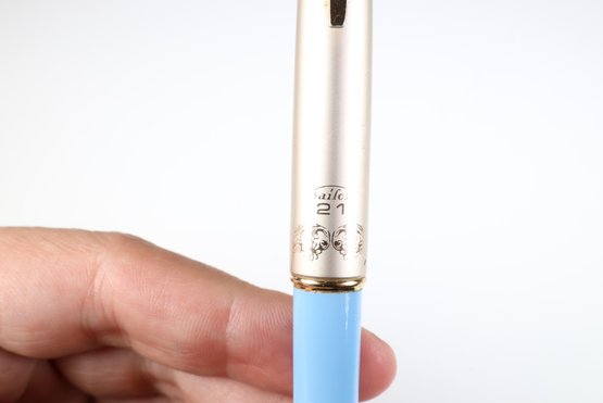 Vintage Sailor Fountain Pen 21K Gold Nib Light Blue & Silver