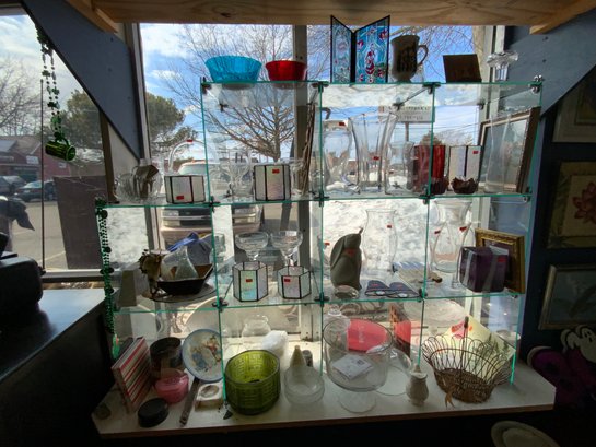 Large Assorted Item Lot, With Glass Display Cubby Unit