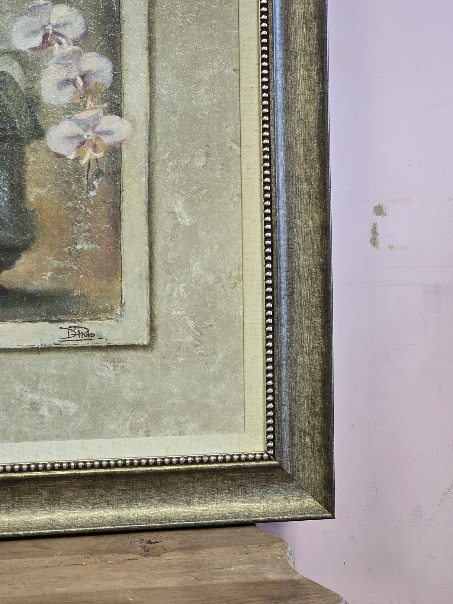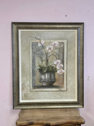Wood Framed Print Signed Of Cherry Blossom In Vase