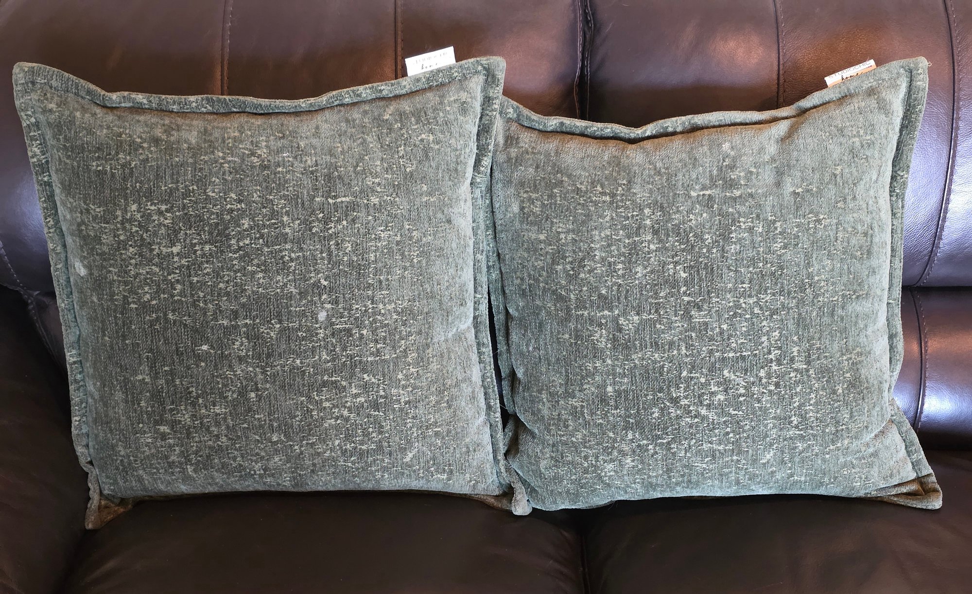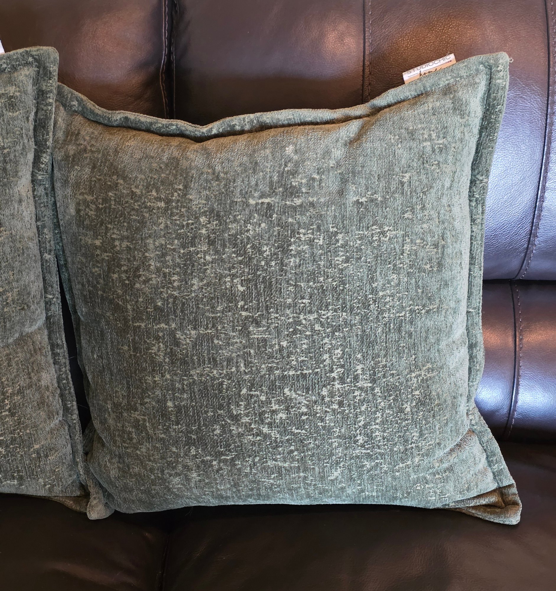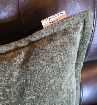 (2) StudioChic Home Brand Decorative Throw Pillows With A Textured Green Cover