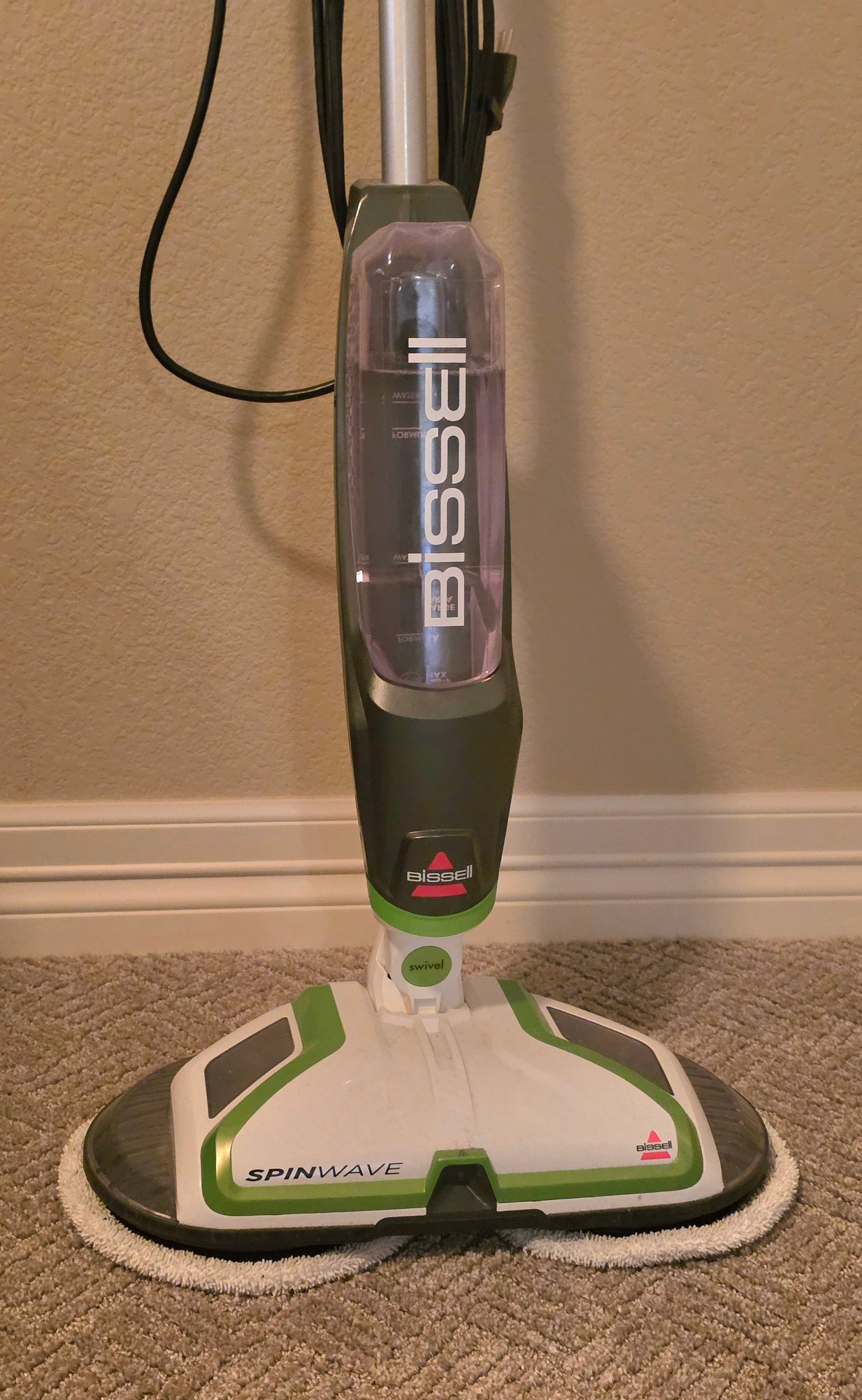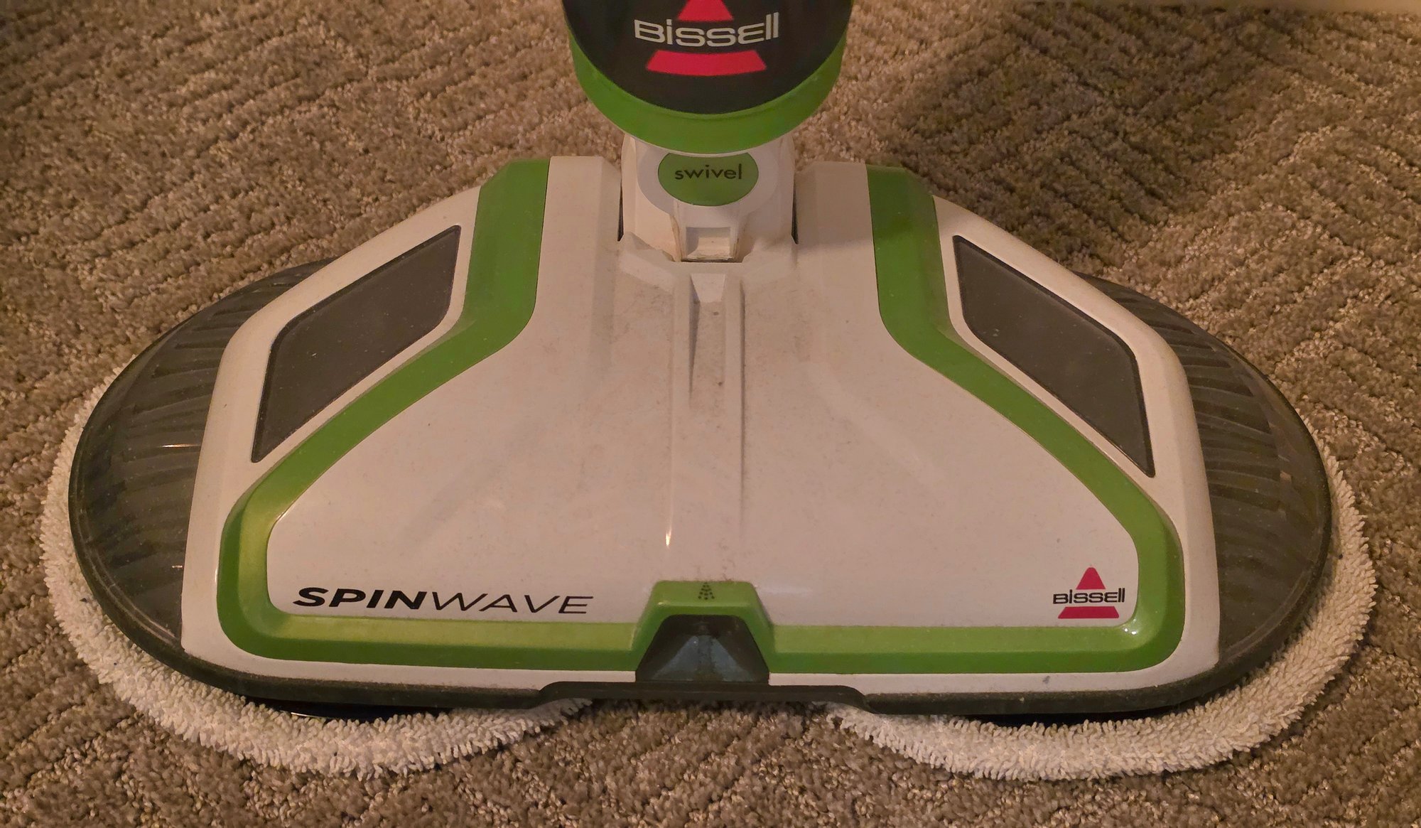 Rotating soft mop pads for cleaning, on-demand targeted spray
