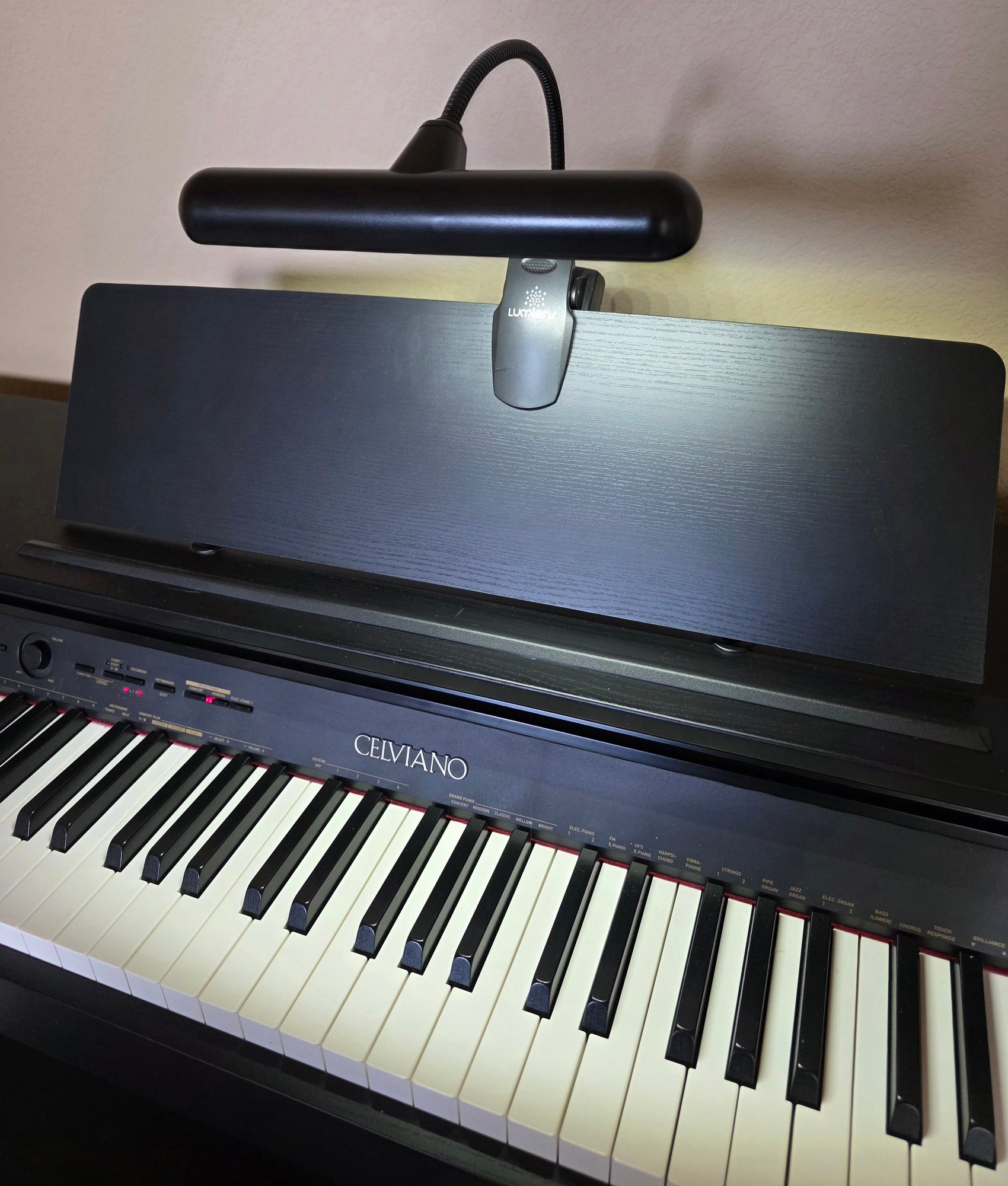 Features: Includes 18 high-quality tones, digital effects like reverb and chorus, and a metronome.