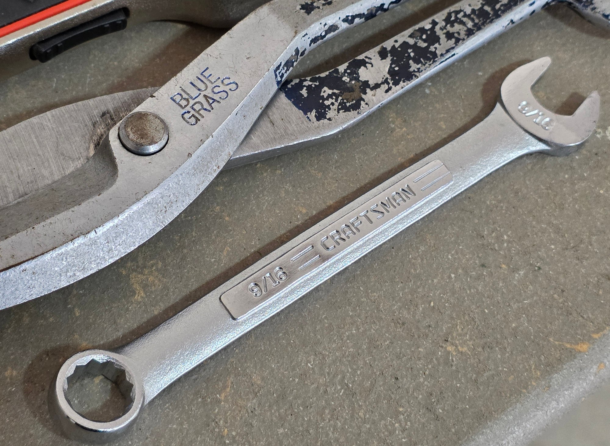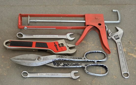 including Craftsman wrenches, a Blue Grass brand tool, and other adjustable wrenches. These tools are popular collectibles for enthusiasts interested in hardware and vintage mechanics.