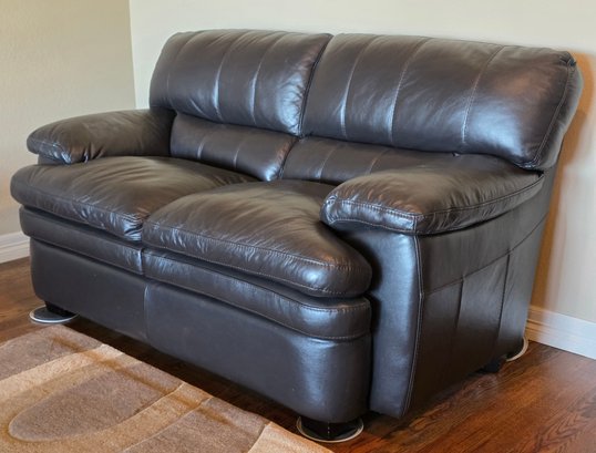 Contemporary Soft Faux Brown Leather Loveseat
