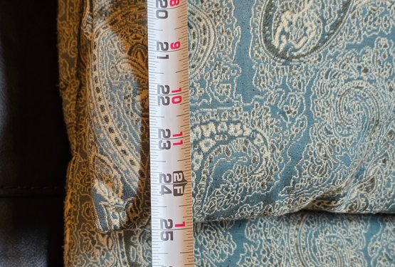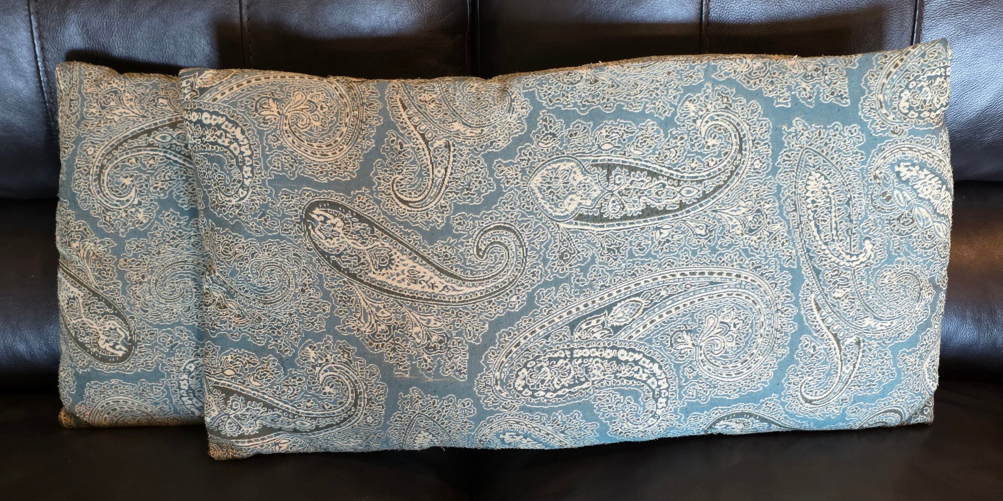 Decorative Throw Pillow Features A Traditional Paisley Pattern In Blue And Cream Colors