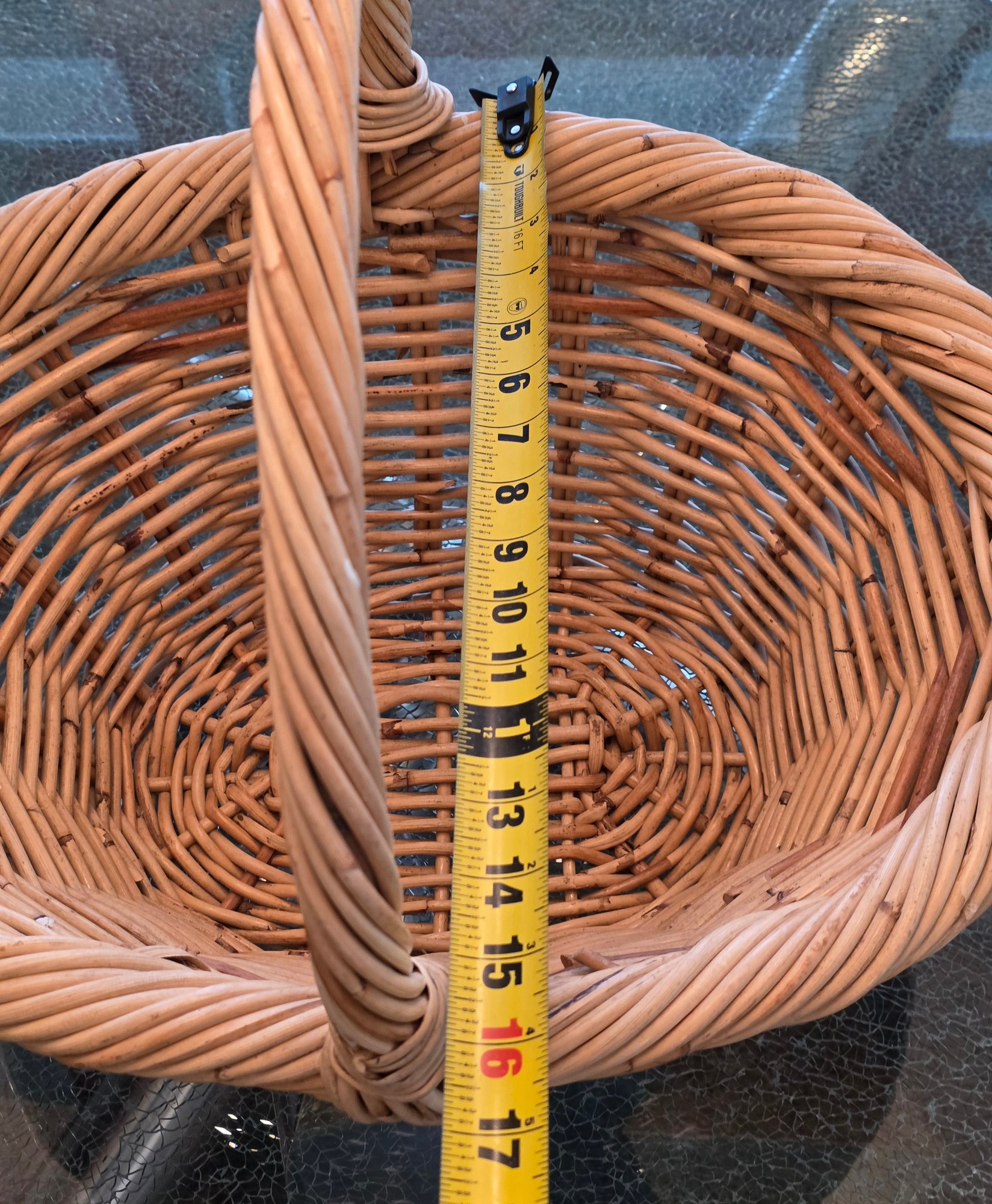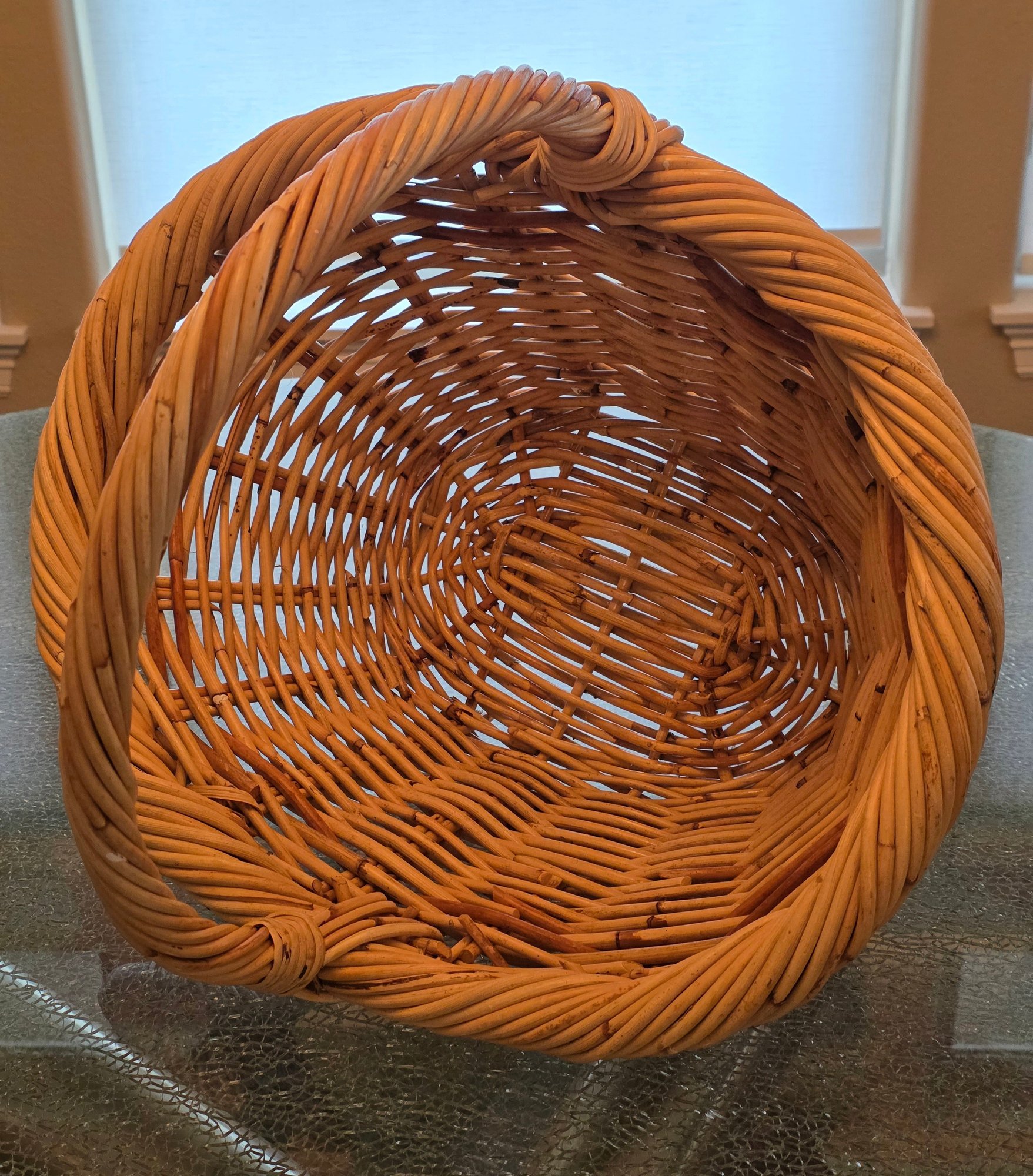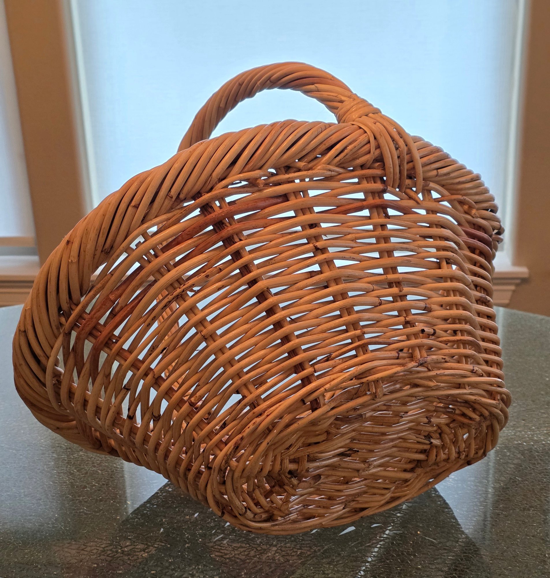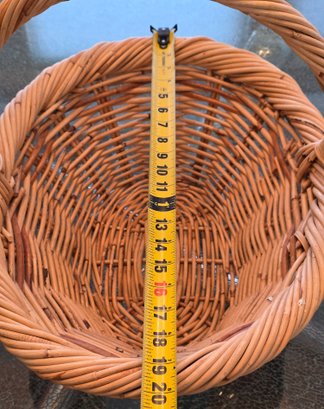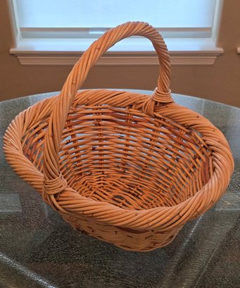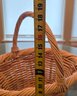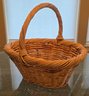 Handwoven Wicker Basket Featuring A Braided Rim And A Sturdy Handle