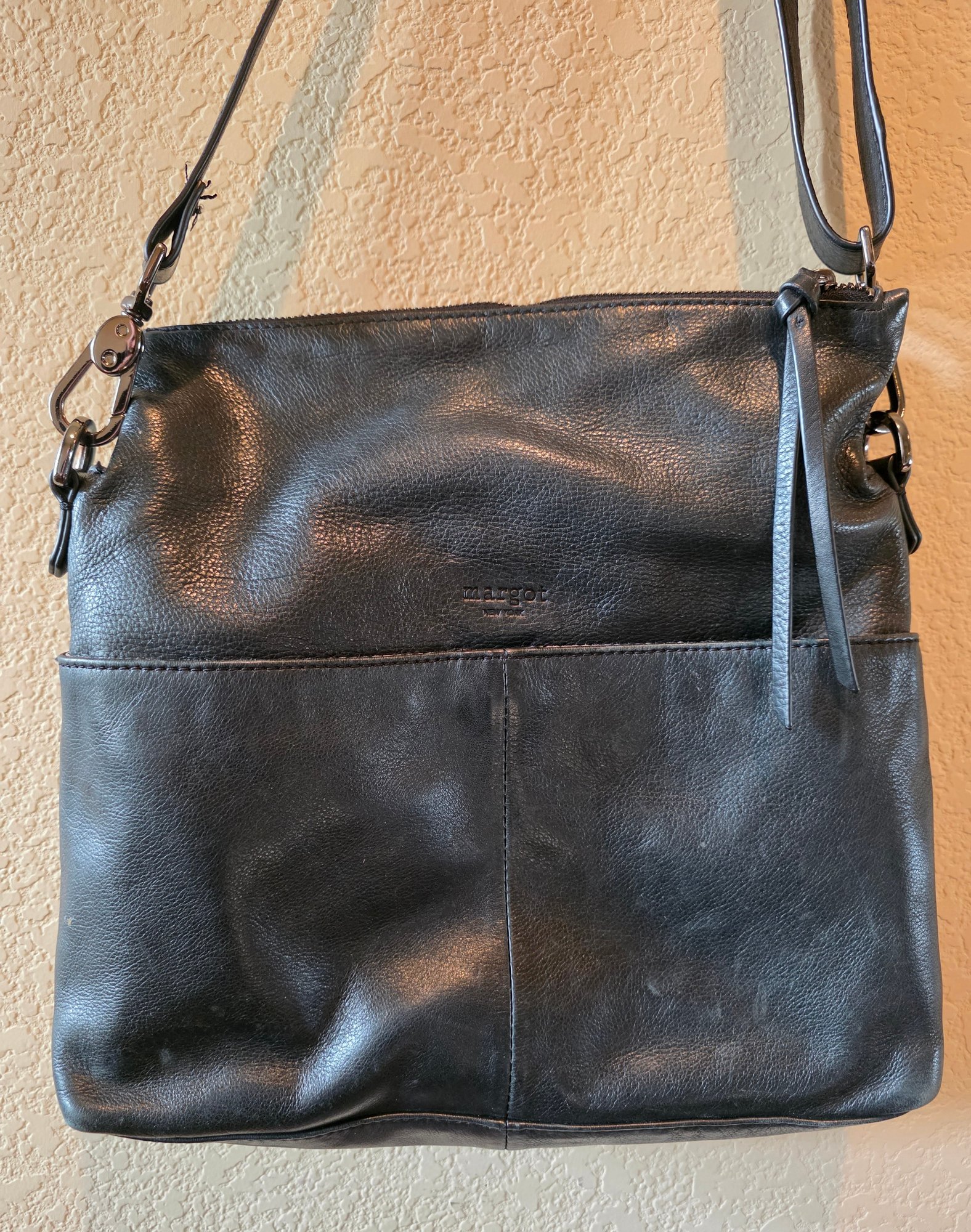 Margot New York Black Leather Crossbody Shoulder Bag