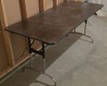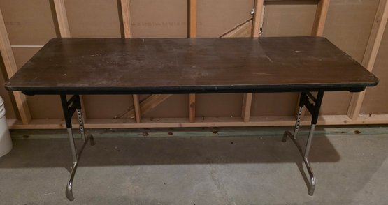 Rectangular Folding Banquet Table Featuring A Woodgrain Laminate Top And Adjustable Steel Legs