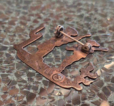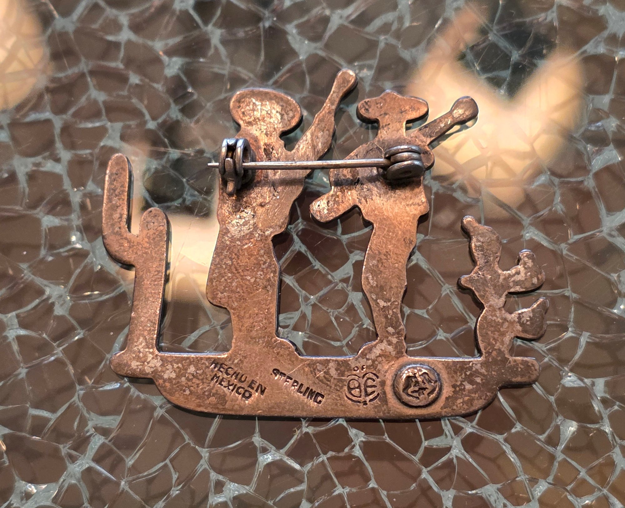 Sterling Silver Brooch Depicting Two Figures In Sombreros Next To Cacti