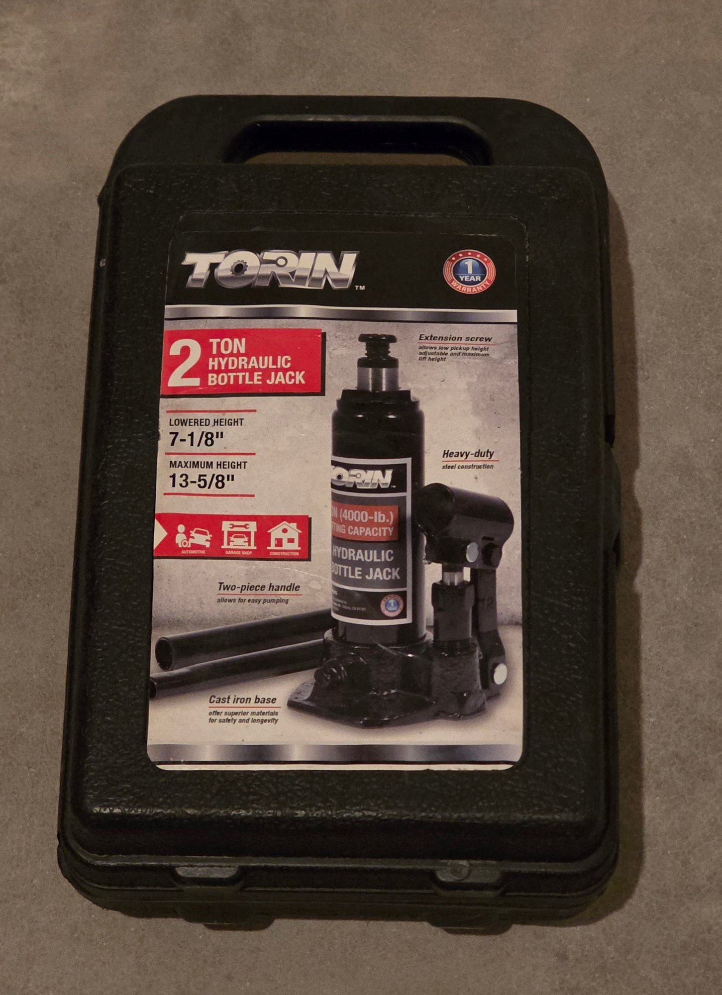 Torin 2-Ton (4000-lb.) Hydraulic Bottle Jack, Used For Lifting Vehicles