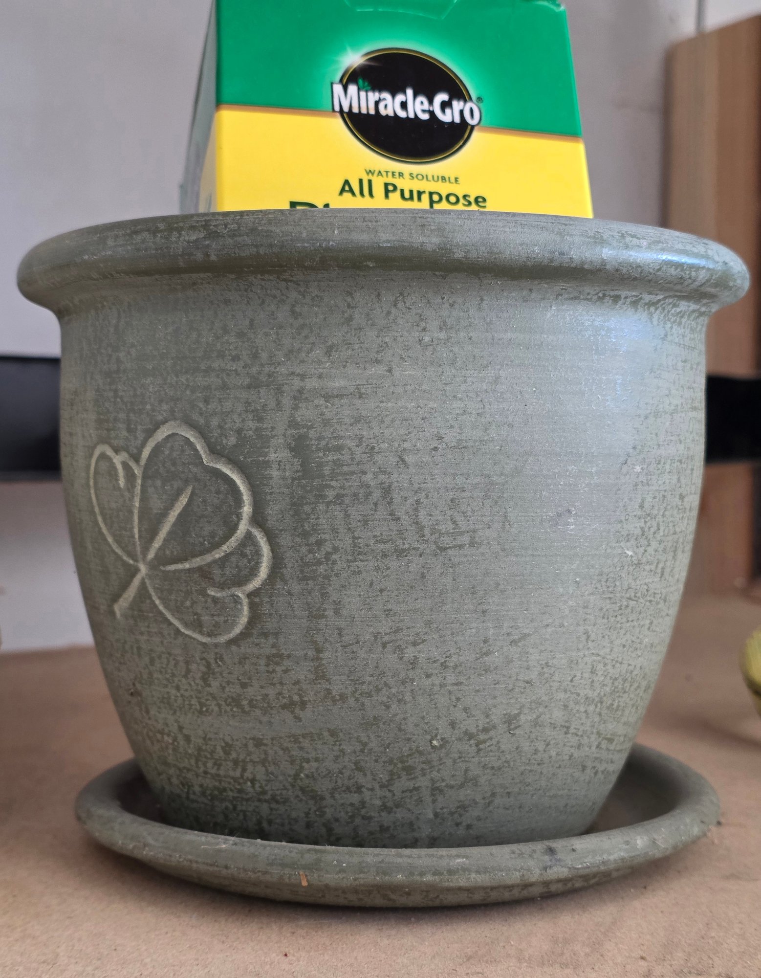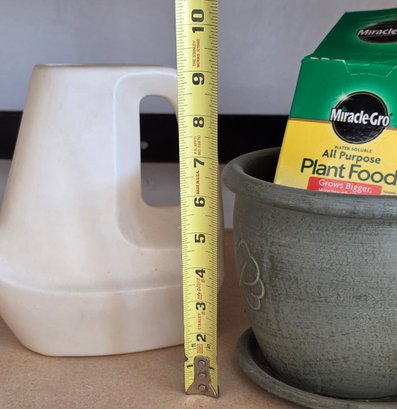 Vintage Rubber Made Watering Can And Ceramic Planter With Miracle Grow Food