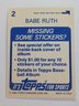 1983 Topps Baseball Stickers Babe Ruth Yankees