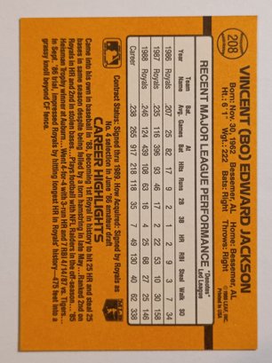 1989 Donruss Bo Jackson Baseball Card Royals