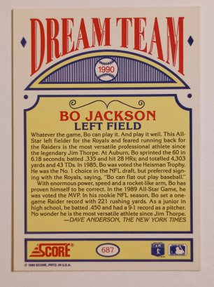1990 Score Bo Jackson Dream Team Baseball Card Royals