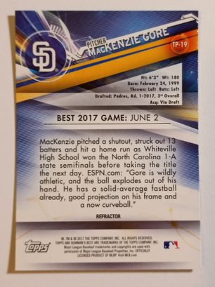 2017 Bowman's Best Refractor MacKenzie Gore Prospect Baseball Card Padres