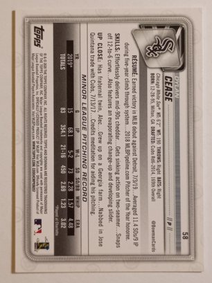 2020 Bowman Dylan Cease Rookie Baseball Card White Sox