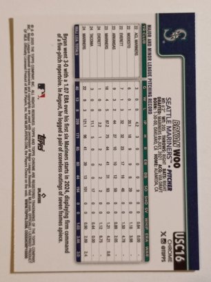 2025 Topps Chrome Sepia Refractor Bryan Woo Baseball Card Mariners