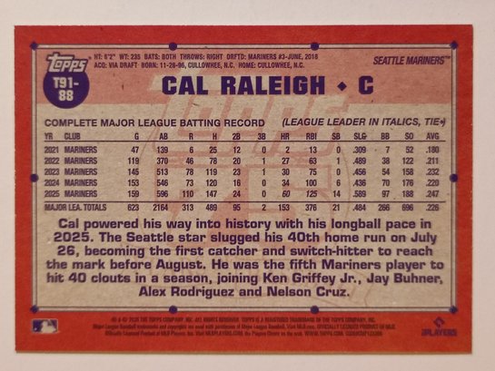 2026 Topps Cal Raleigh '91 Topps Insert Baseball Card Mariners