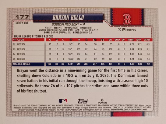 2026 Topps Sandglitter Brayan Bello Parallel Baseball Card Red Sox