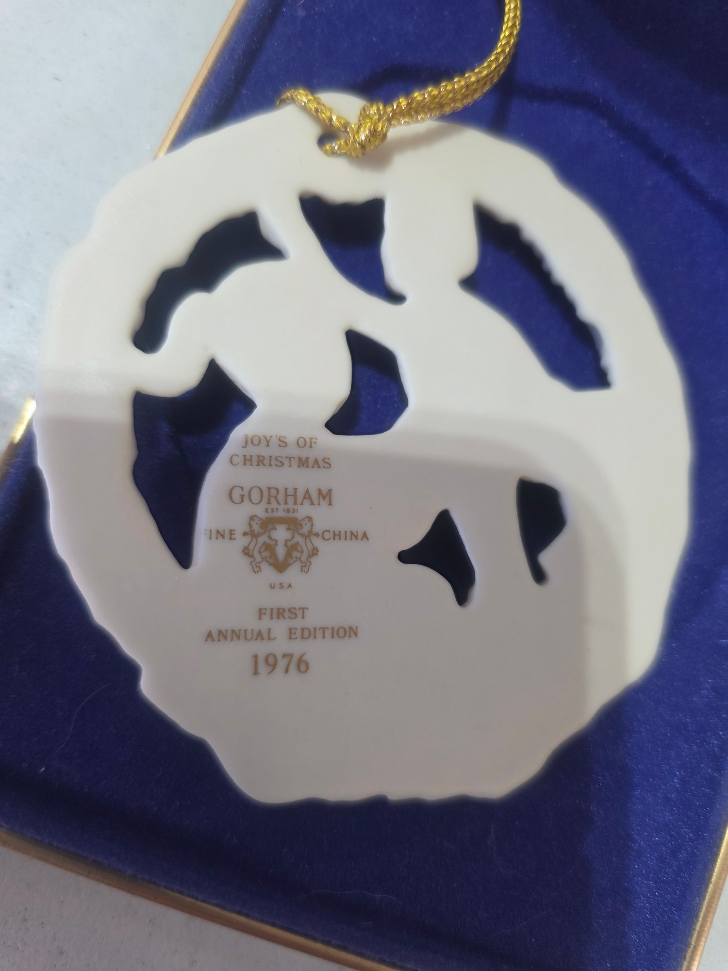 1976 Gorham Fine China ‘Joys of Christmas’ Limited Edition Ornament with Box