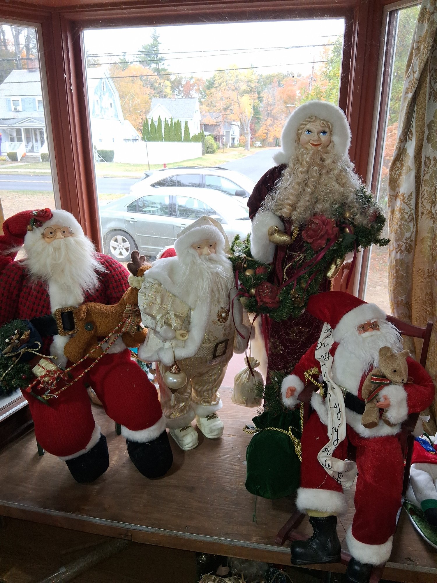 4- vintage Christmas window display Santa's and a tall Mrs Claus see pictures for details