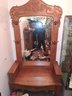 Stunning antique carved oak full size very large carved mirror with bench This large piece you will need to bring helper because you remove from space on you own this piece is in amazing condition looks to have been here for awhile see all pictures for all details almost 8ft tall