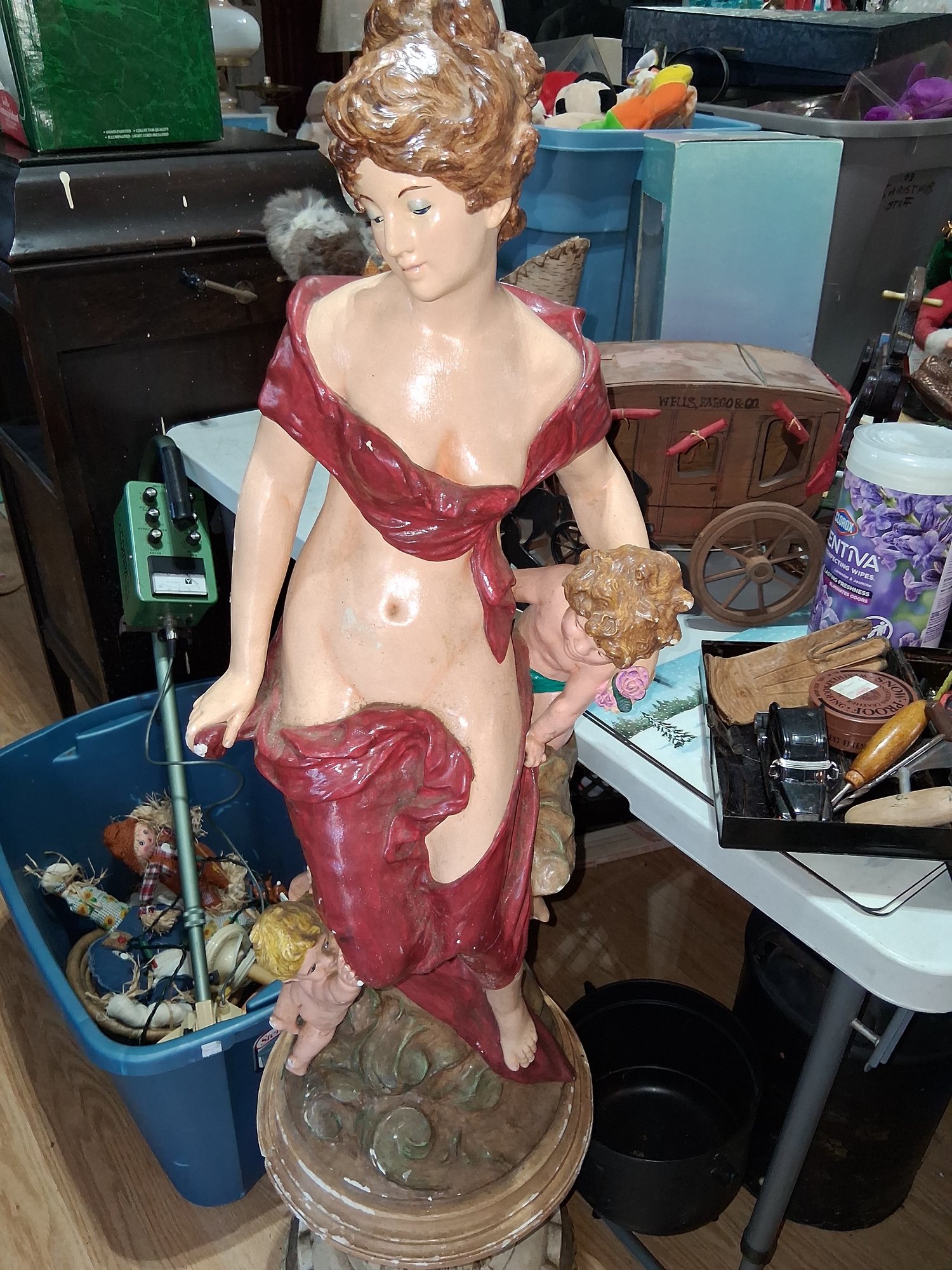 Nice antique large two-piece garden statue angel with her babies see pictures for details this item has multiple chips in it it is as found