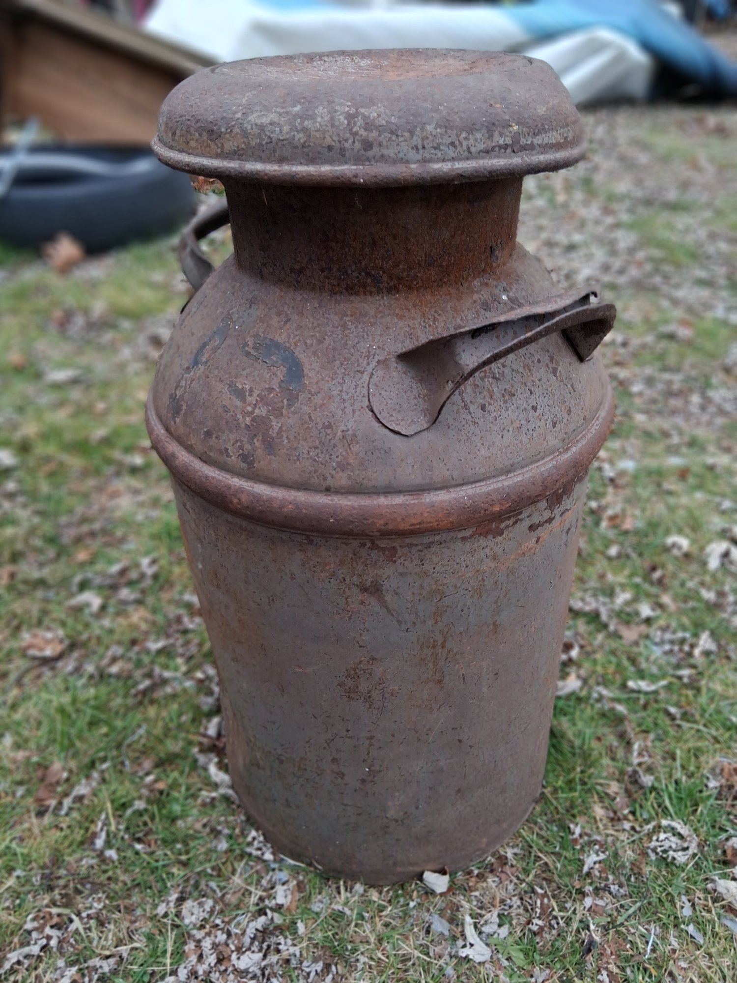 Antique metal milk jug and excellent condition for age nice piece to put in the garden see pictures for details