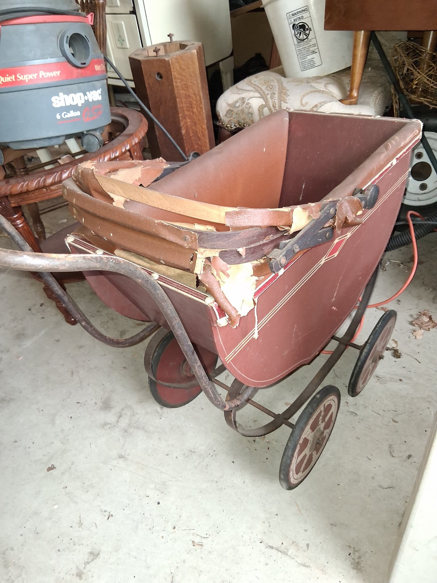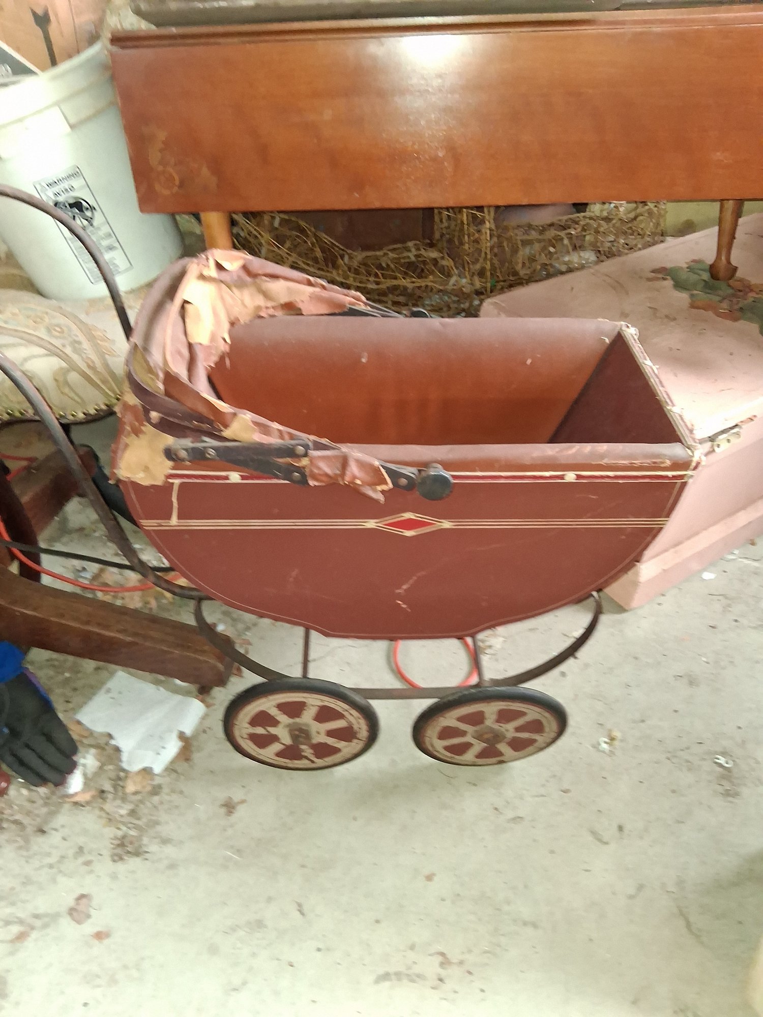 Nice antique wooden doll carriage As found We'll need restoration see all pictures for details