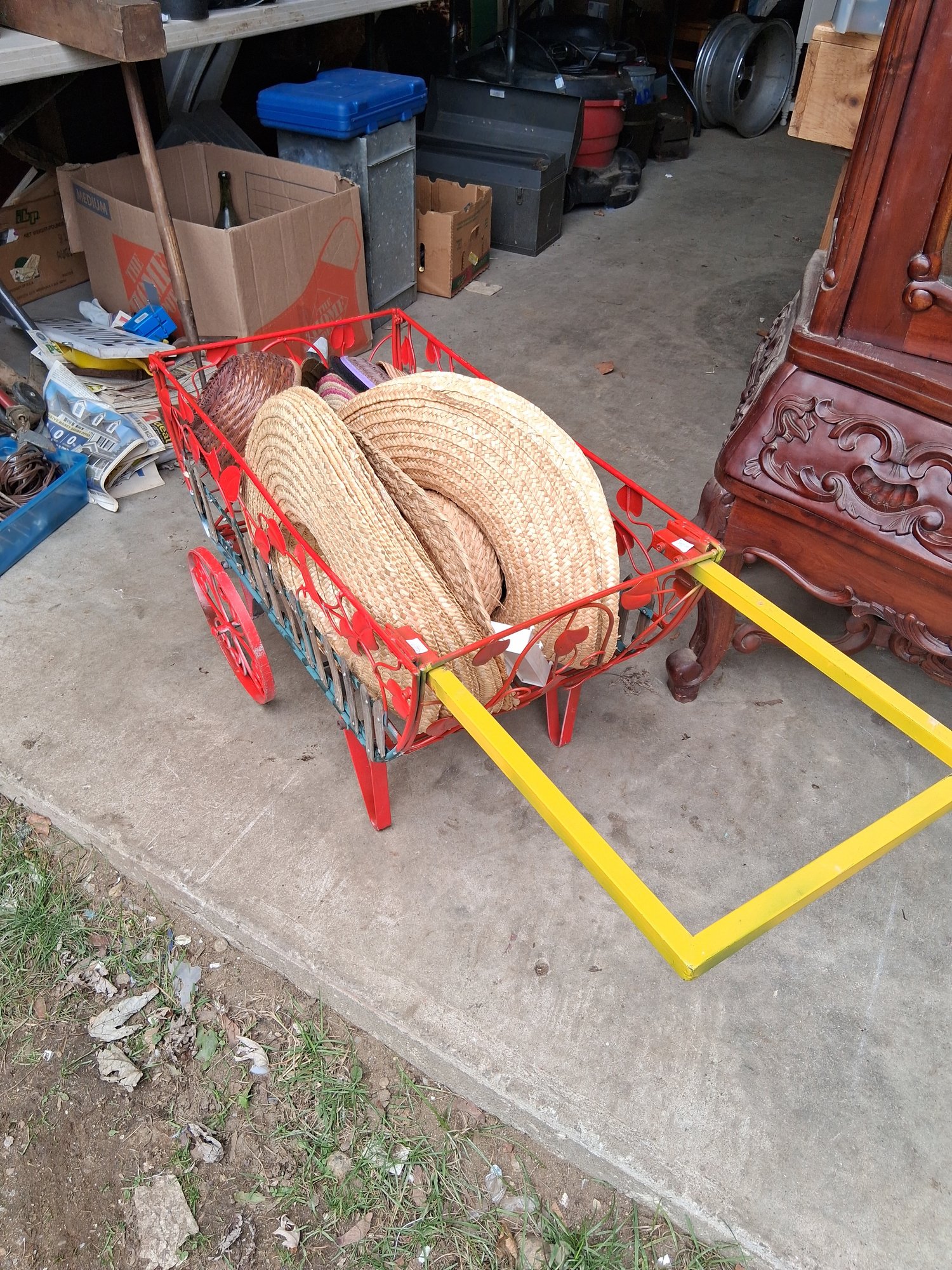 Nice lot as found garden Wagon full of hats see all pictures for details