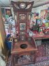 Painted glass, ornate carved and painted wood wash stand, hall stand. Presumably chinese.