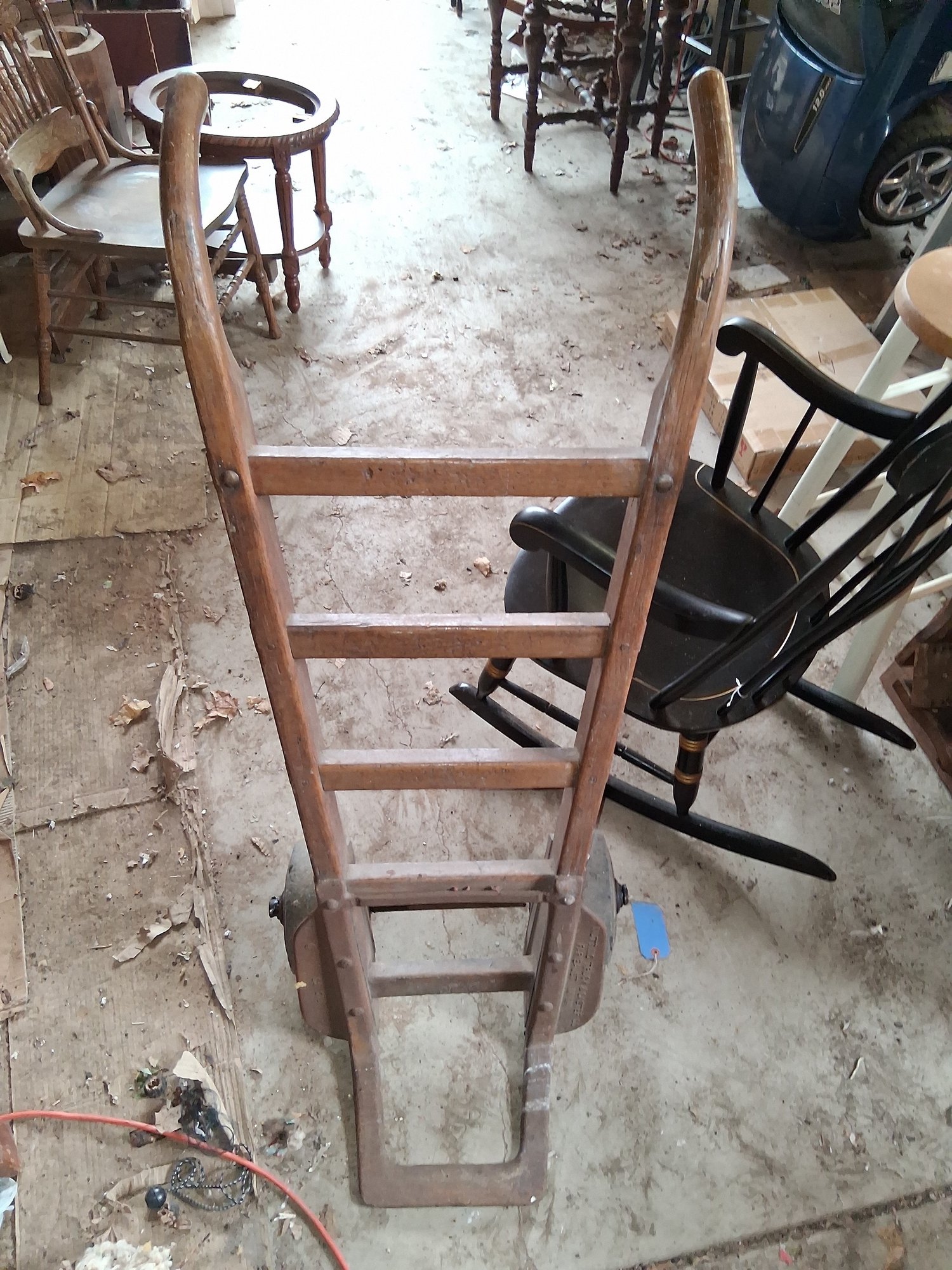 Amazing find astonishing antique wooden dolly/pushcard as found in barn see pictures for details