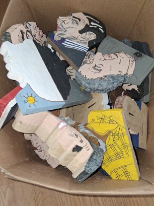 Loaded box with hand cut hand-painted vintage wooden cutouts famous people see all pictures for details