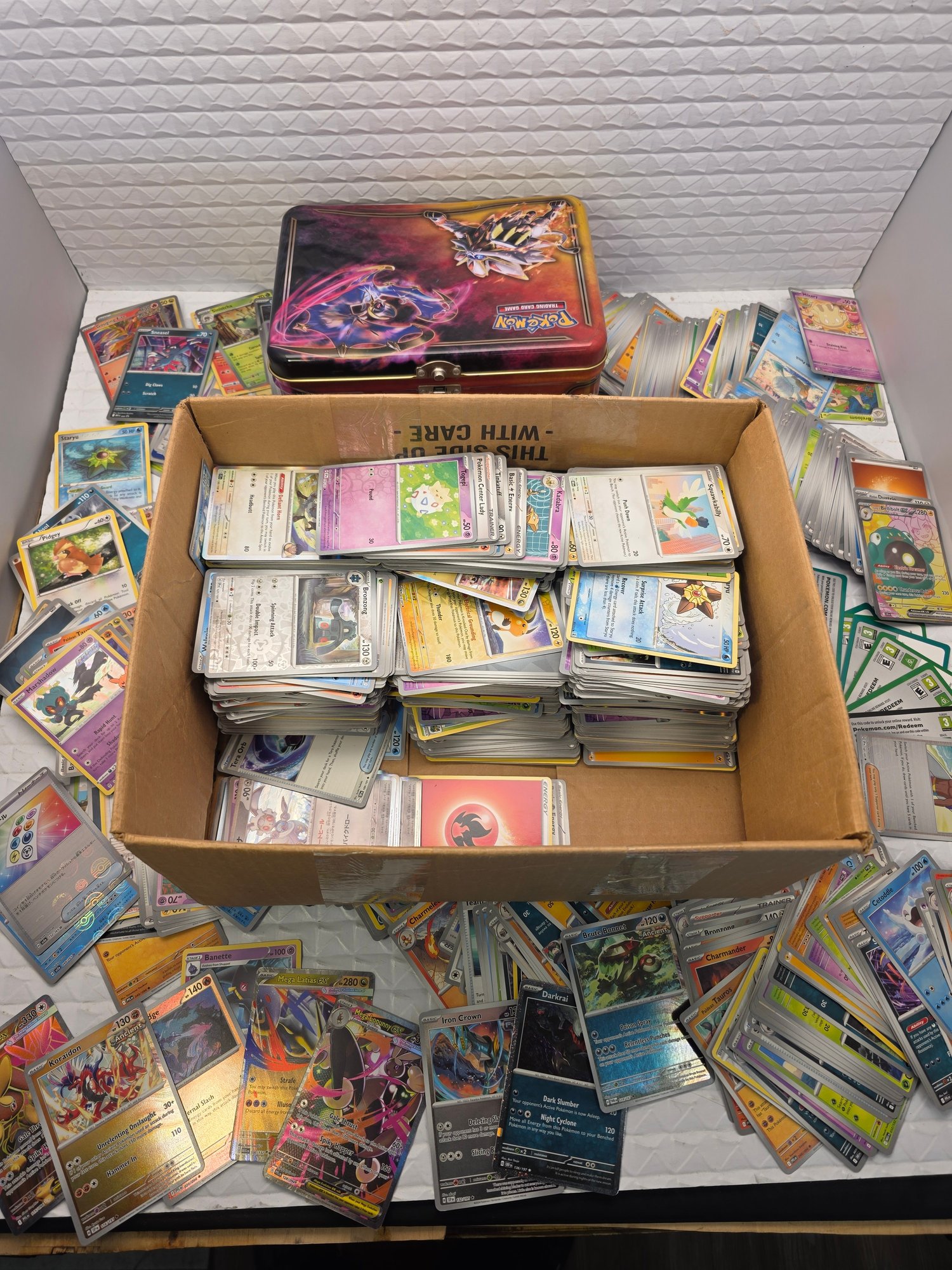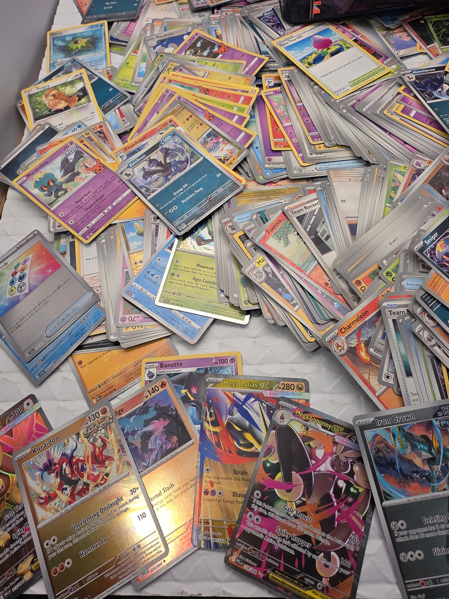 We only went through 1/3 of the lot - this are all the cards you see on the first photo. 5%-8% of the cards are holo cards. All cards are in excellent condition.