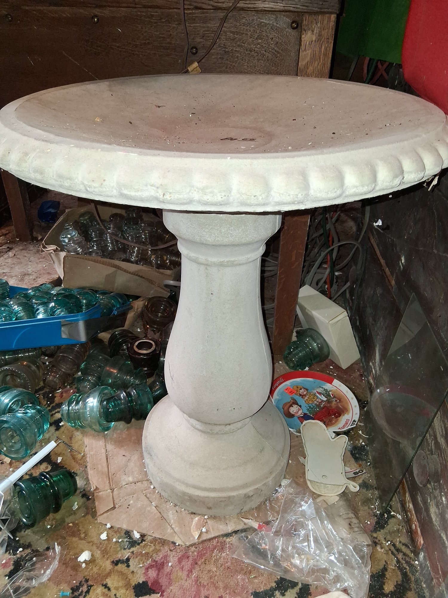 Nice heavy two-piece cement bird bath and excellent condition didn't see any chips or cracks see pictures for details