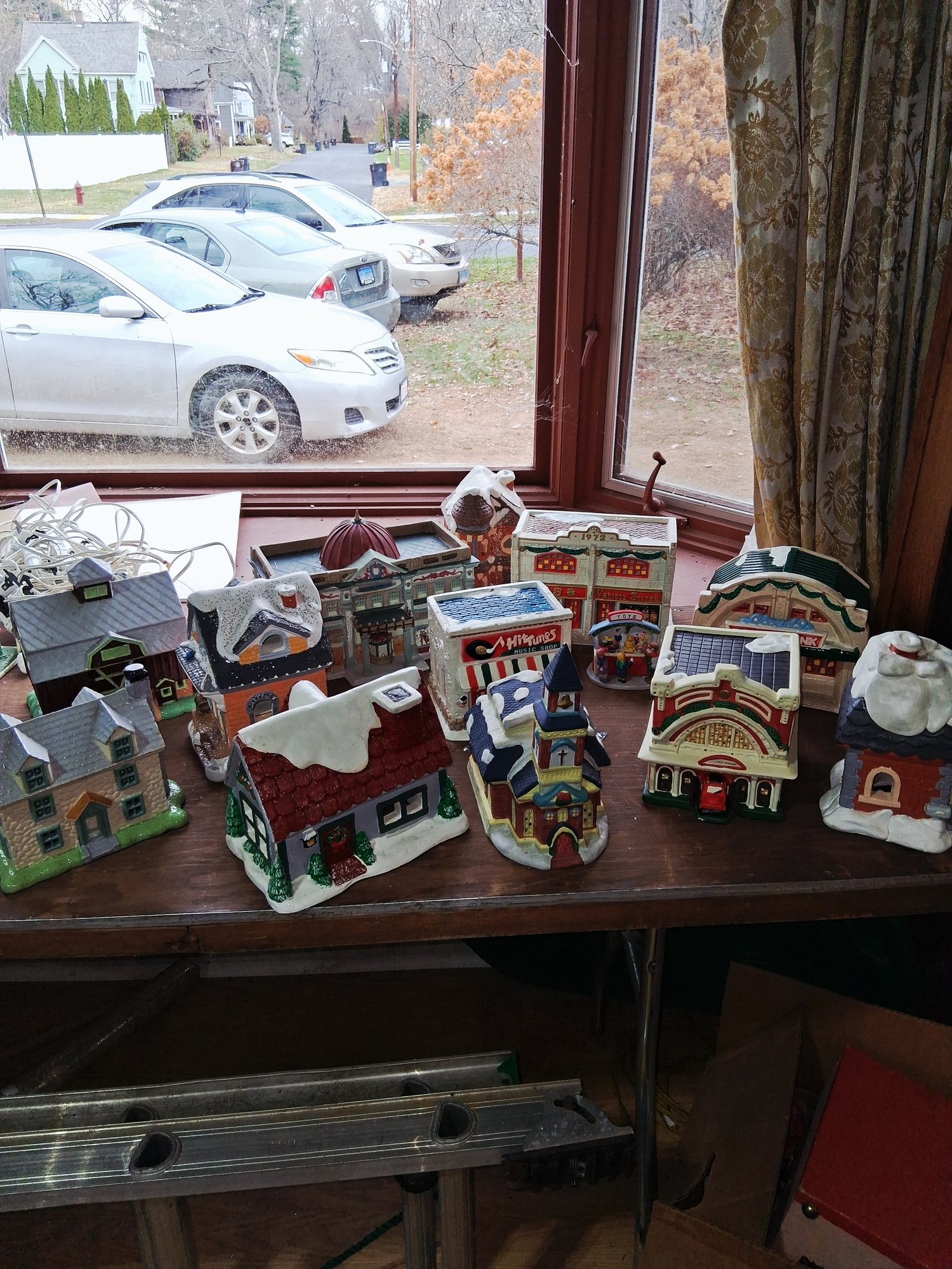 Nice table lot vintage Christmas buildings as found no cords in excellent condition see all pictures for details