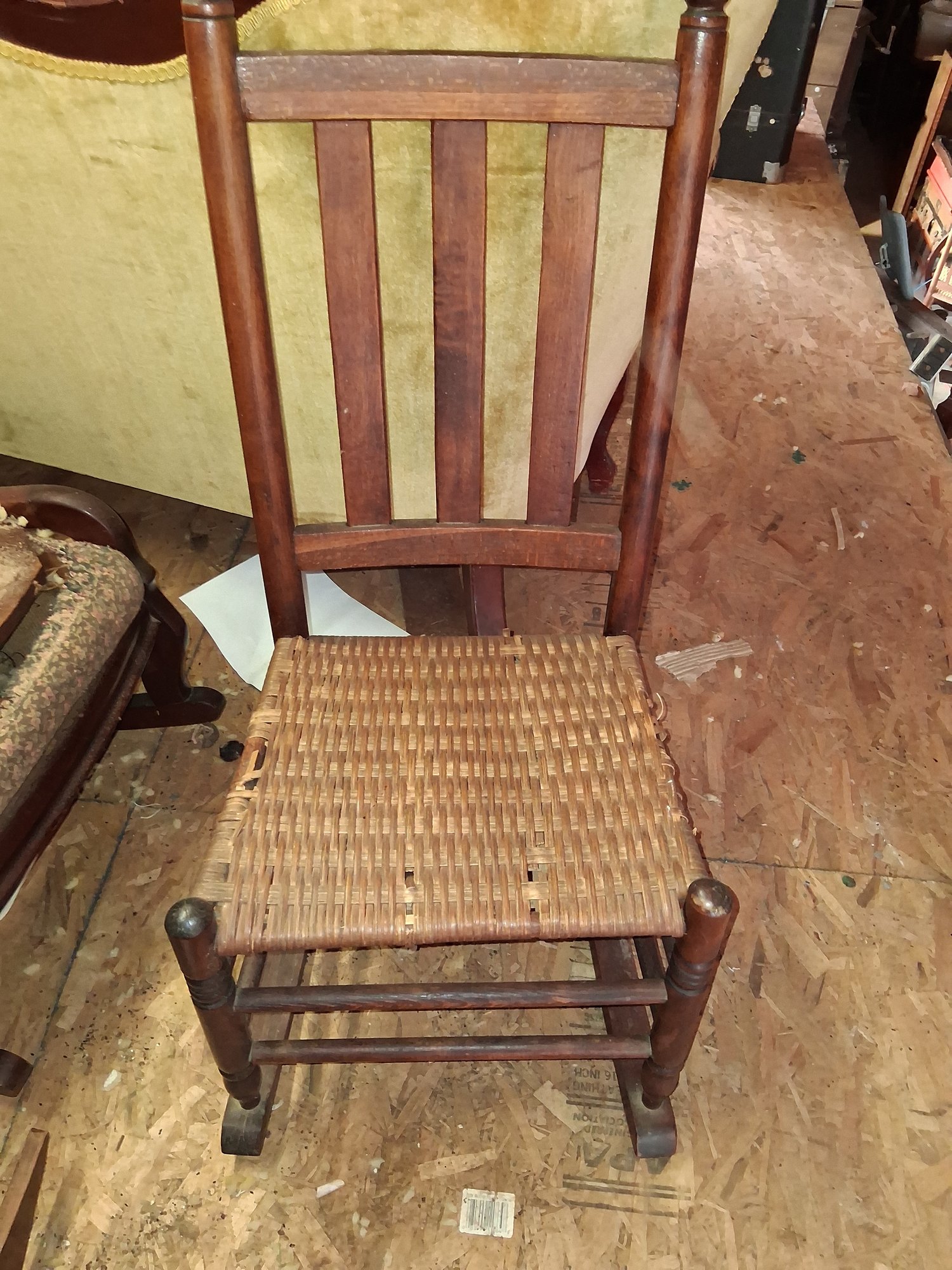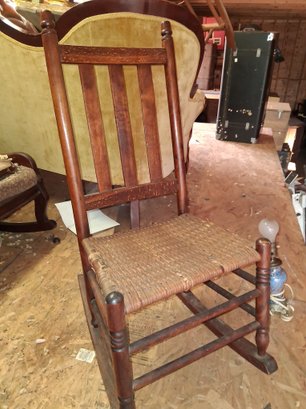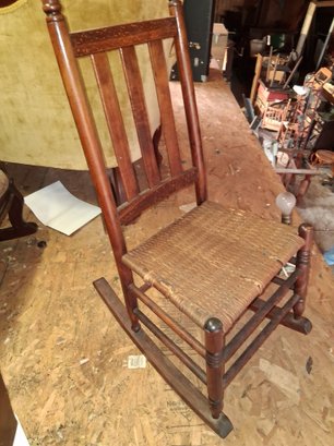 Nice vintage kids wicker seat rocking chair as found in garage see pictures for details
