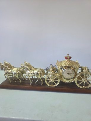 vintage United Clock Company horse-drawn carriage clock, often referred to as a "Cinderella" or "Royal Horse and Carriage" clock.