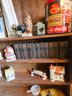 Antique Dickens books (some minor mold and spine issues), various ceramic houses and castles, a large vintage coca cola tin