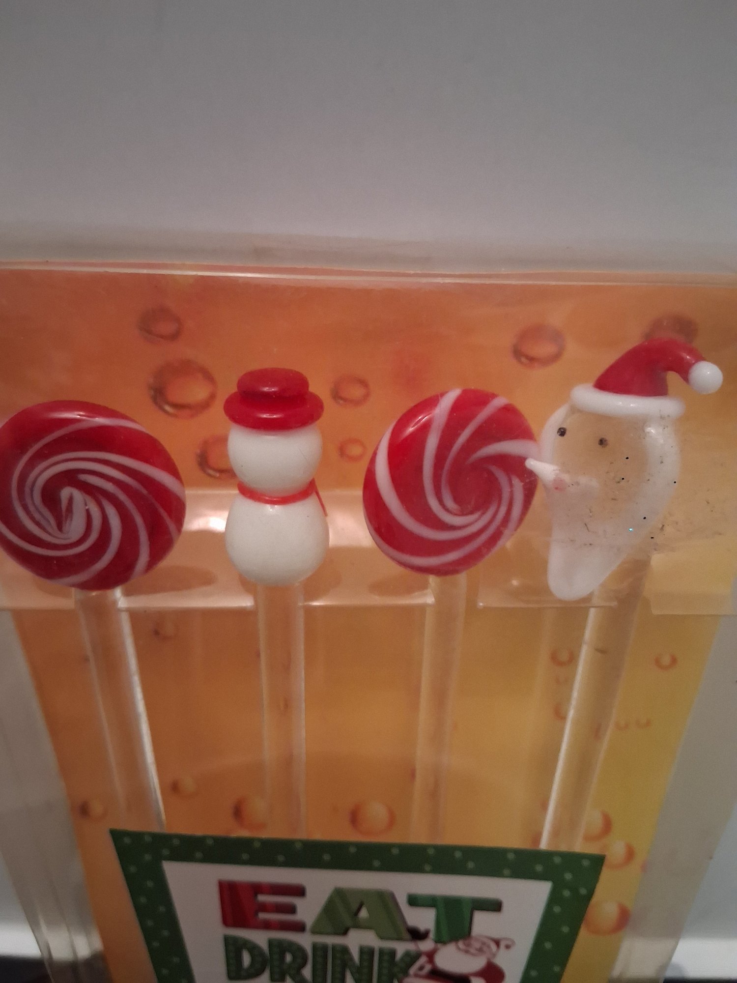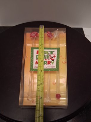 Cute art glass for set Christmas cocktail stirs condition is new see pictures for details