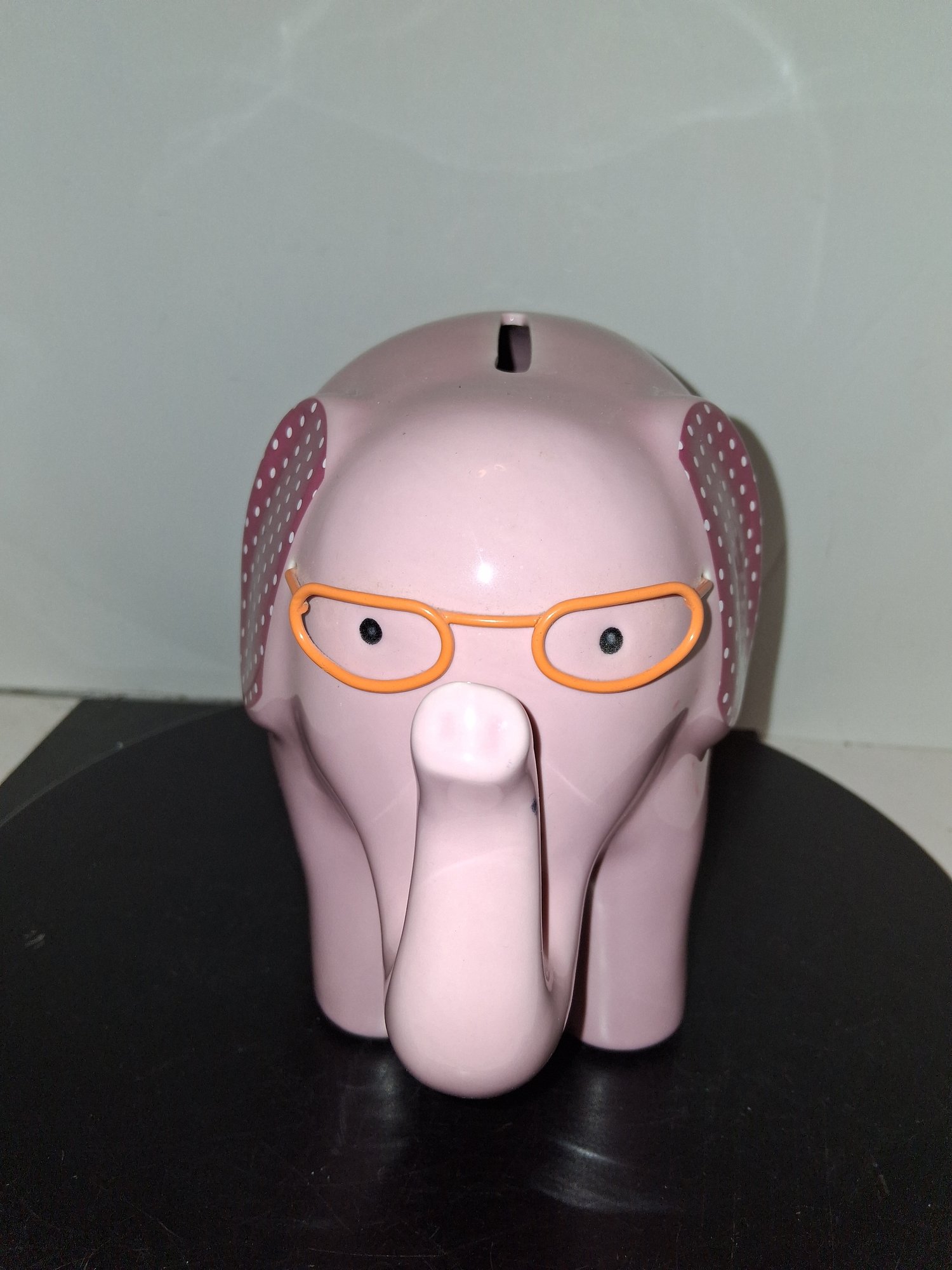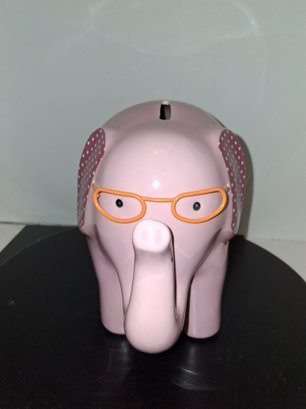 Cute ceramic pink elephant with glasses piggy bank like new condition no cracks or chips see all pictures for details