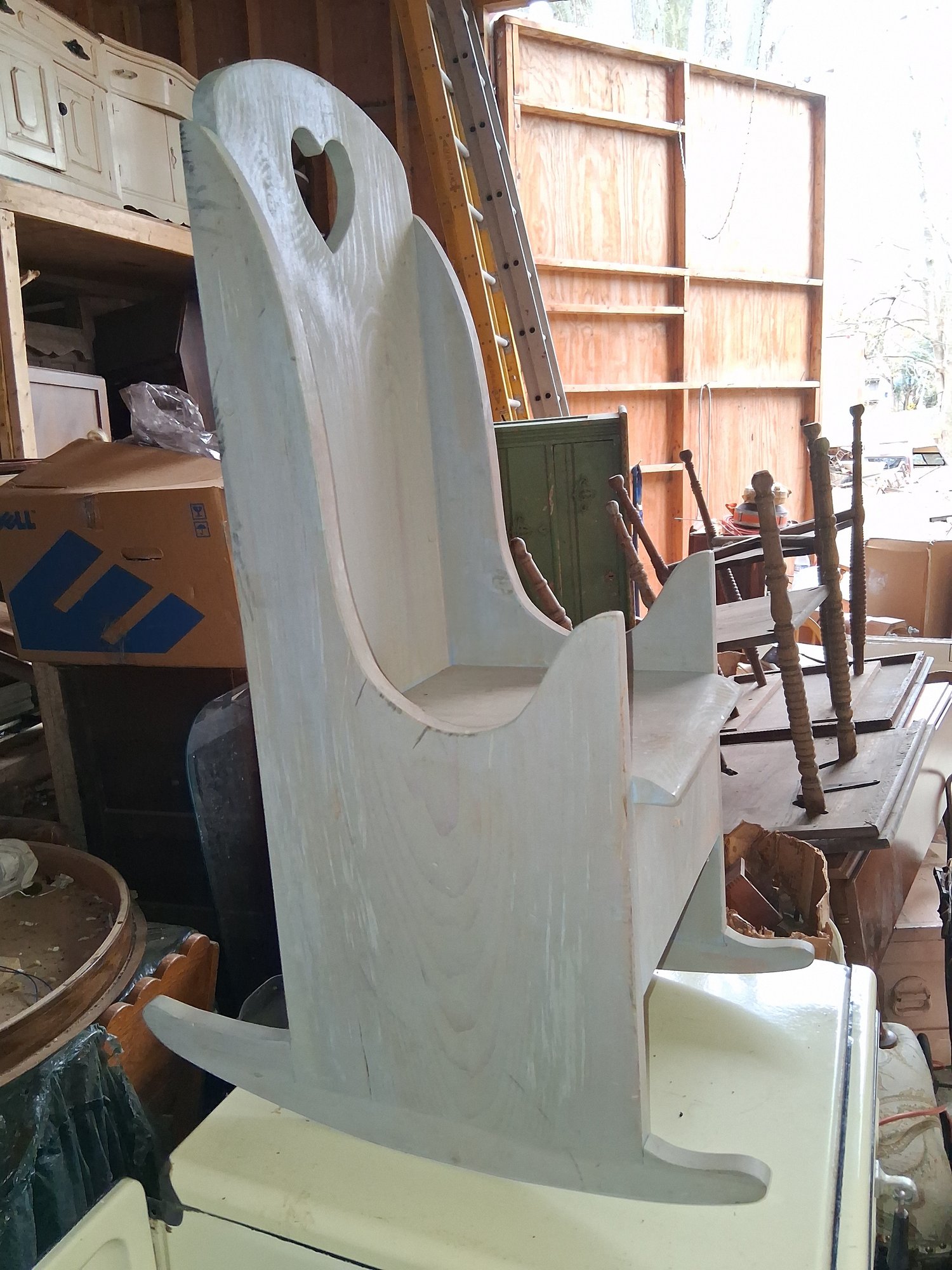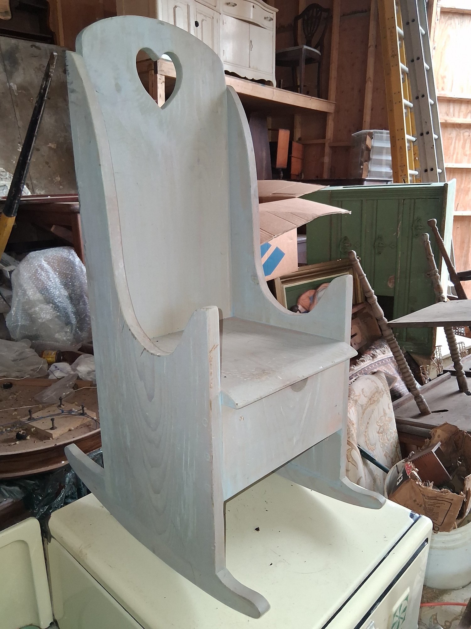 Cute solid wooden kids rocking chair as found in barn see pictures for details